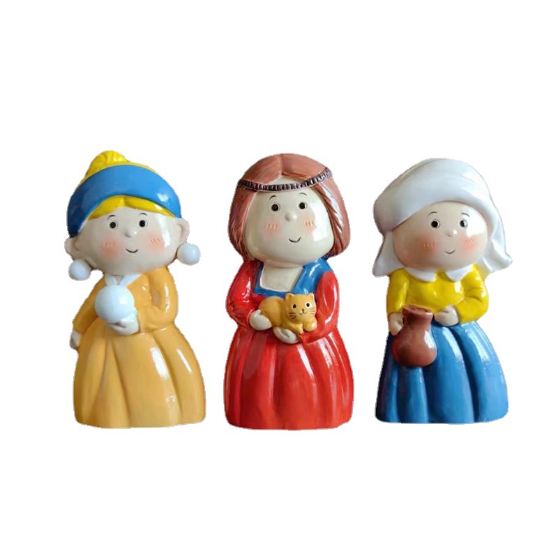 新款潮玩手办3D树脂冰箱贴名画卡通可爱娃娃拿破仑珍珠女孩装饰贴