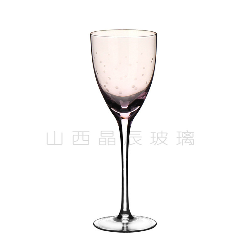 人工吹制8oz红酒杯 240ml水晶红酒杯喇叭口磨花斑点高脚杯鸡尾杯
