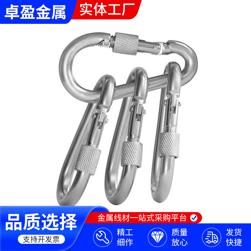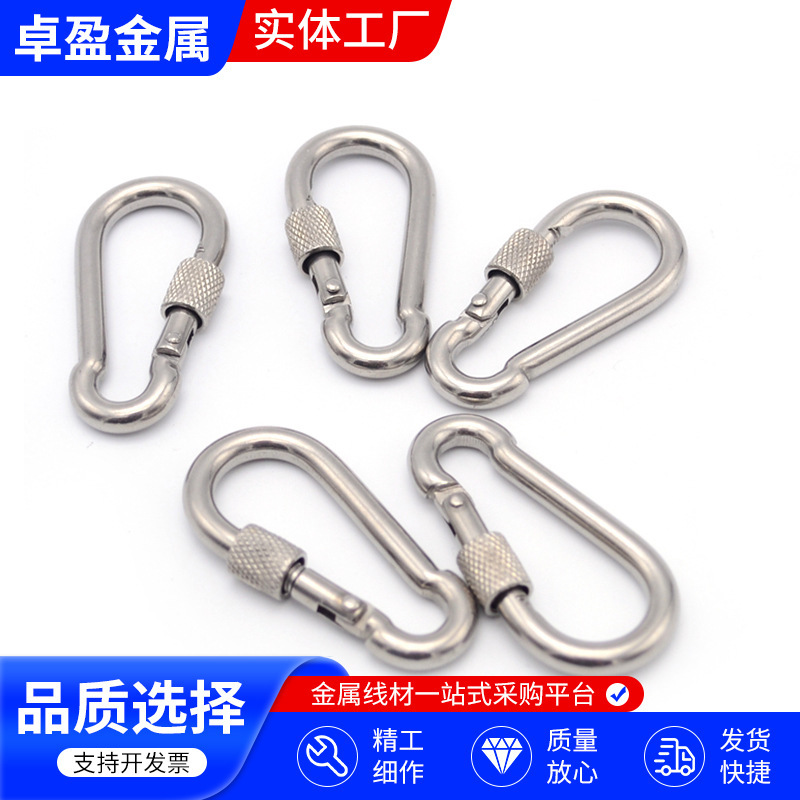 304不锈钢弹簧扣带母绳扣带圈型葫芦扣环形登山扣钩索具链条扣环