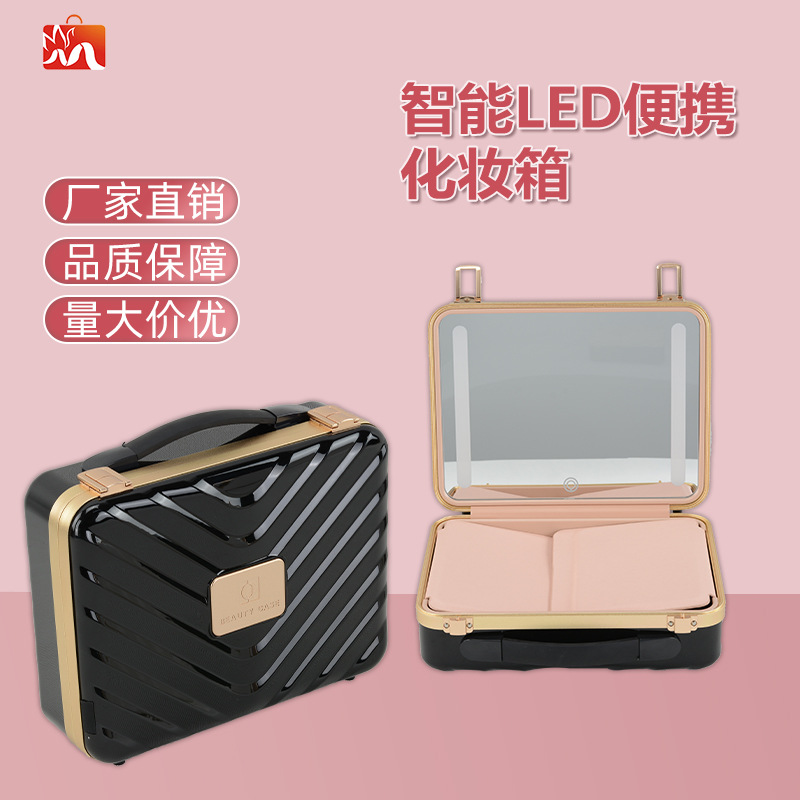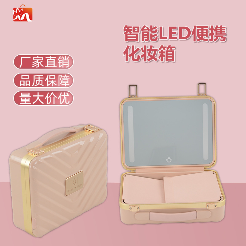 LED智能补光镜大容量纹绣化妆箱化妆品收纳便捷式高颜值化妆包