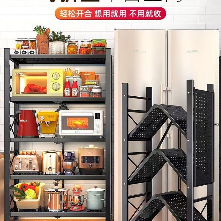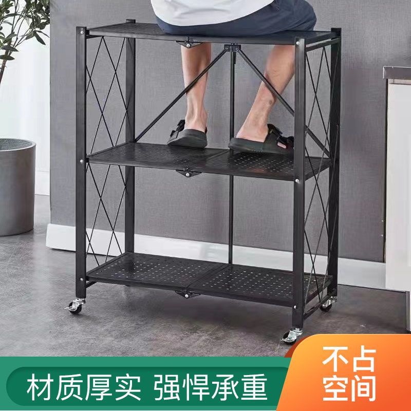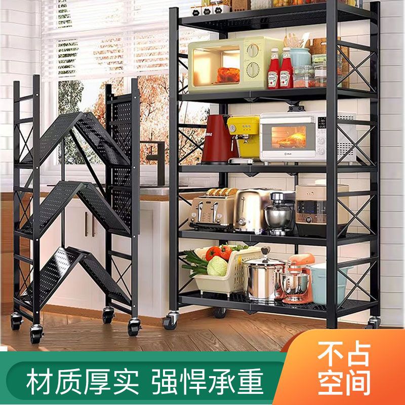 厨房免安装落地置物架客厅书房折叠收纳置物架可移动客厅储物架