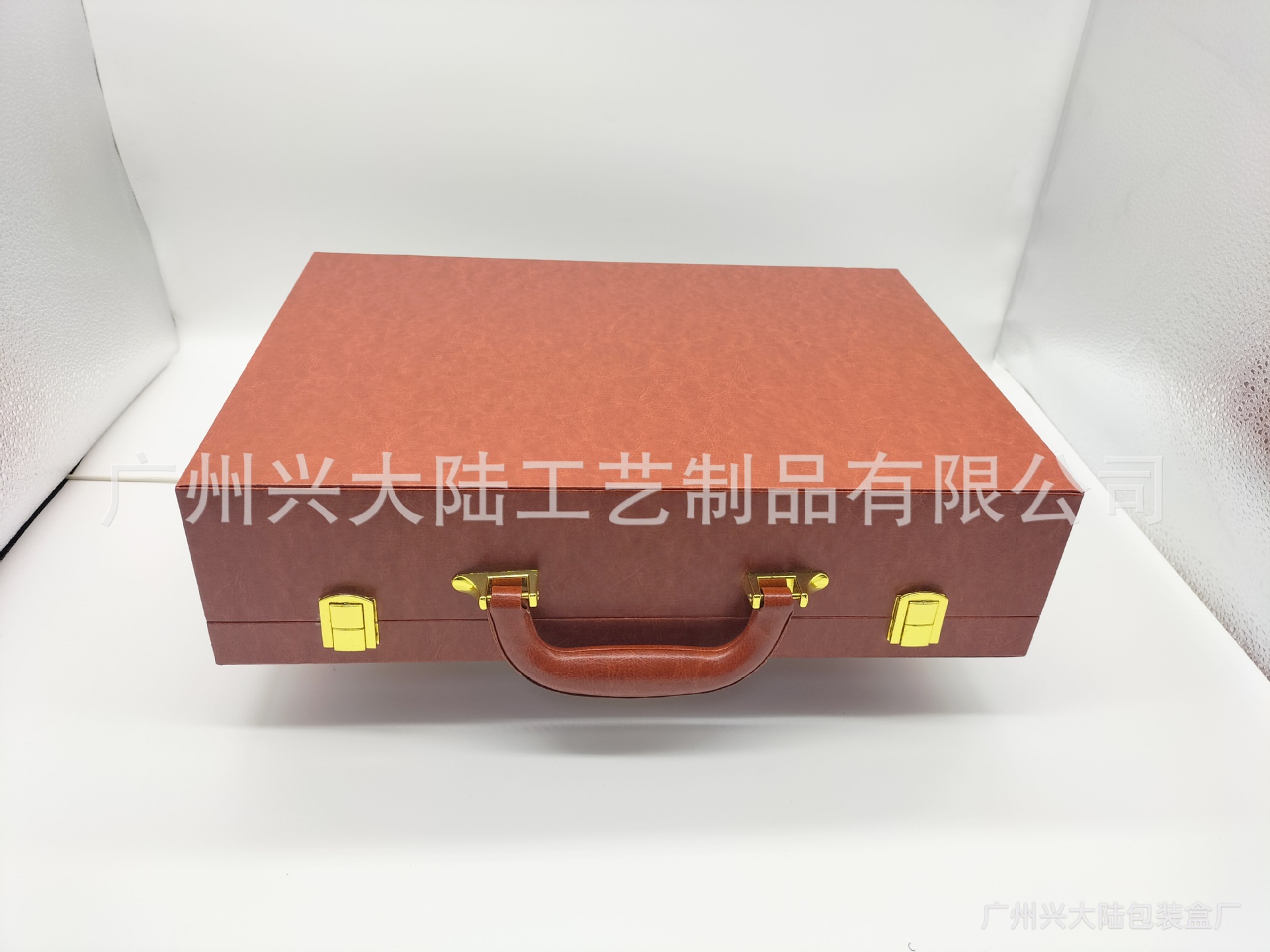 广州皮盒工厂高端礼品皮盒子丝印LOGO带提手锁扣皮箱可定尺寸