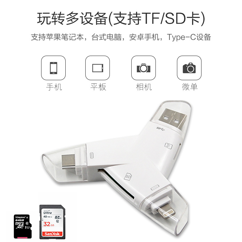 适用读卡器多合一苹果安卓type-c华为手机电脑高速SDTF卡高速传输