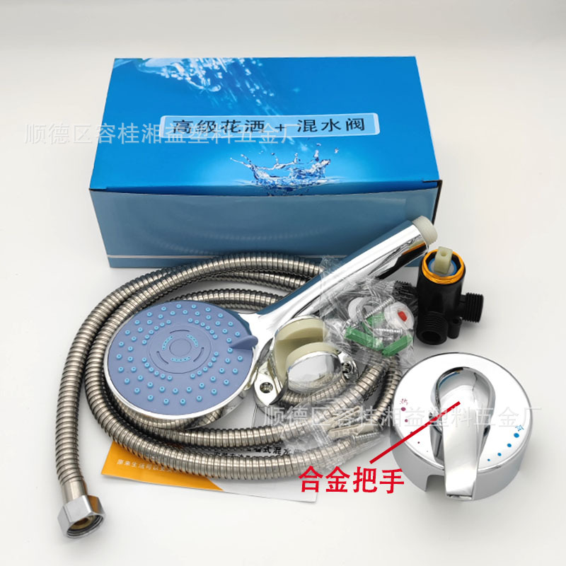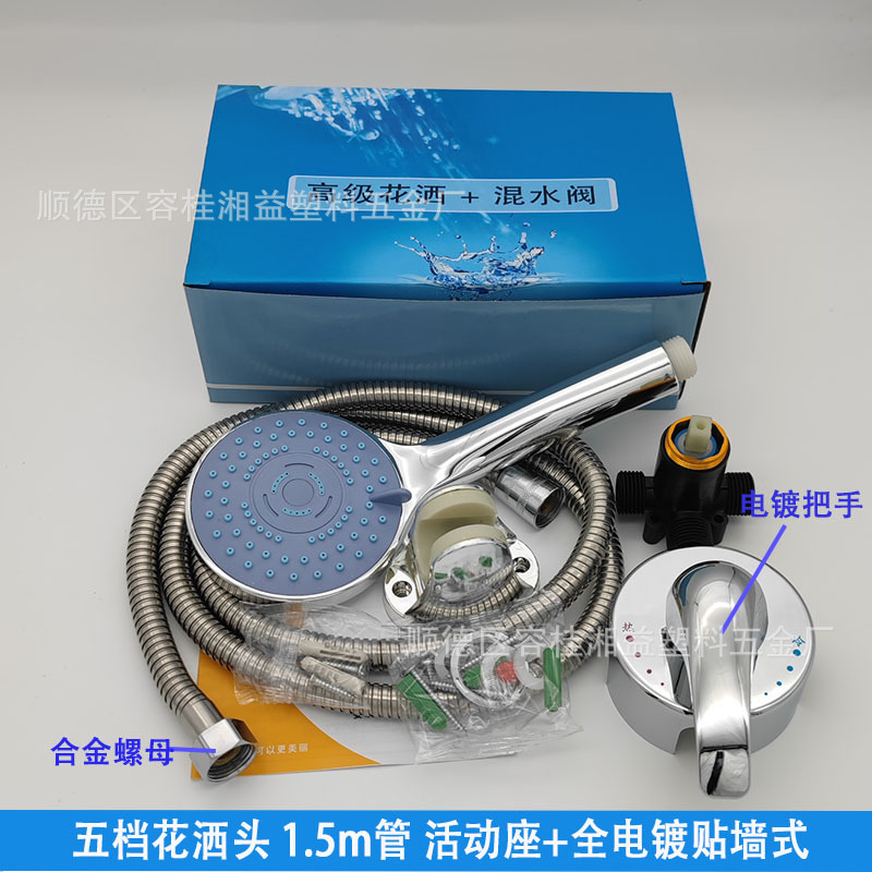 五档花洒套装不锈钢软管贴墙式混水阀淋浴套装u型阀冷热混合开关