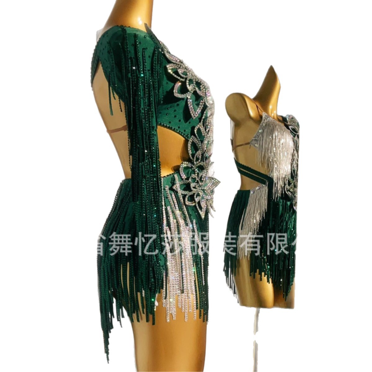 新款跨境拉丁舞连衣裙流苏裙性感成人拉丁舞服装伦巴表演出服女