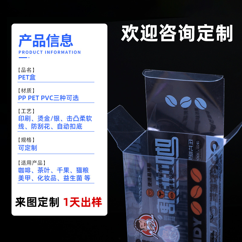 PET透明包装盒咖啡食品咖啡豆塑料盒PET磨砂彩盒印刷PET塑料盒子