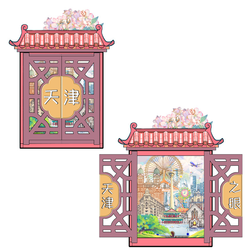 城市之窗冰箱贴礼品旅游景点彩色磁性贴国潮文创木质工艺品定制