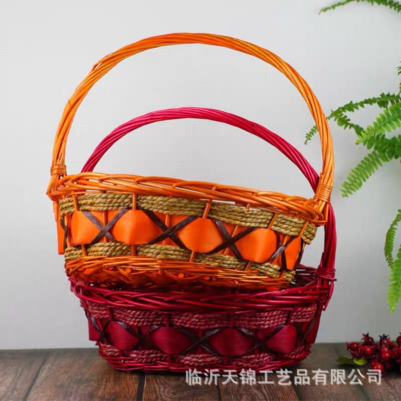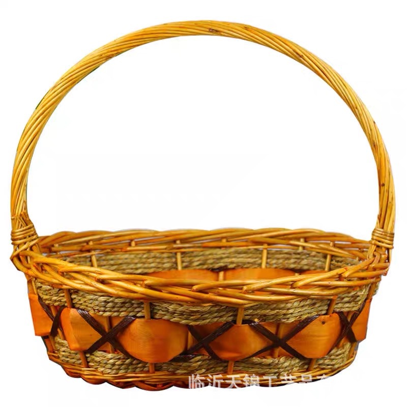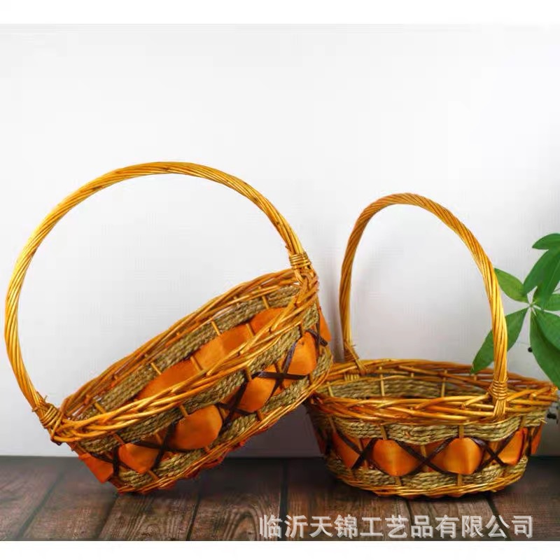 柳编水果篮藤编手提收纳筐竹编礼品篮 编织装饰插花篮手工采摘篮