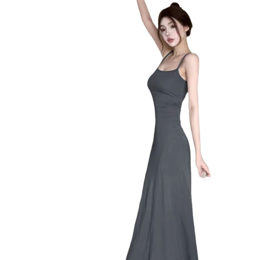 辣妹弹力吊带连衣裙子女夏季2025新款收腰显瘦一字肩内搭打底长裙