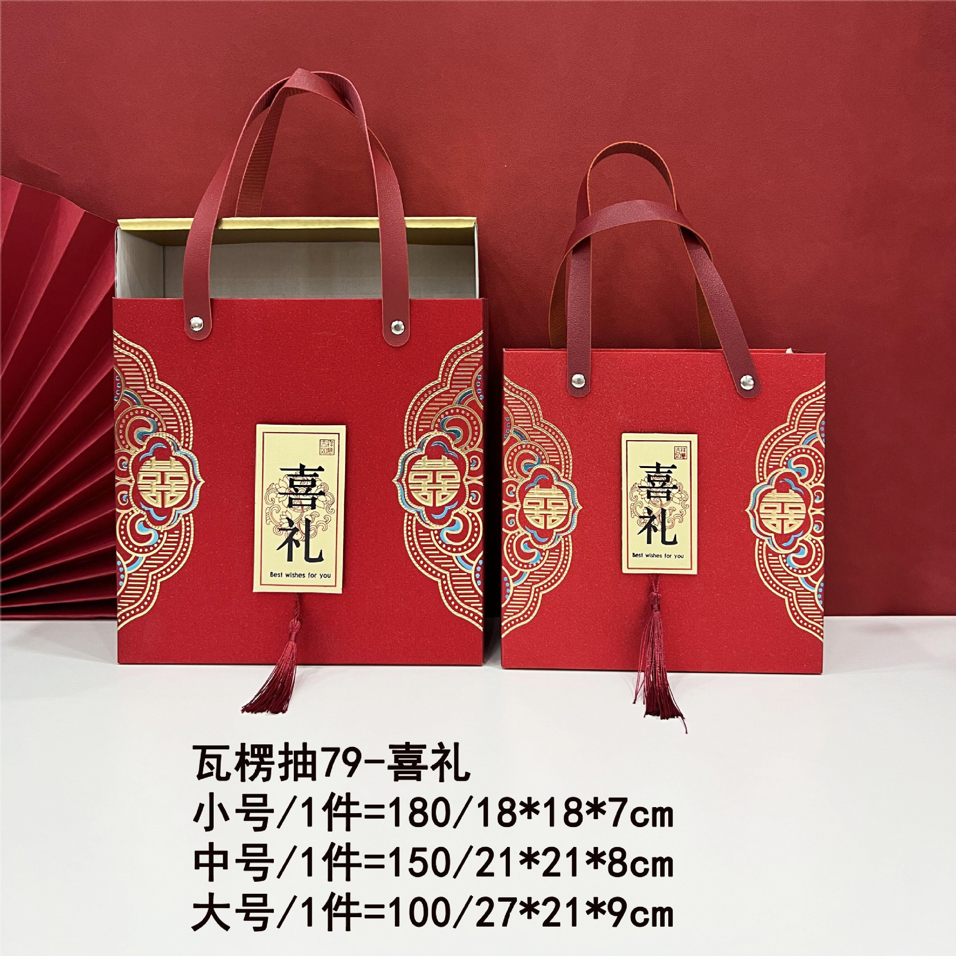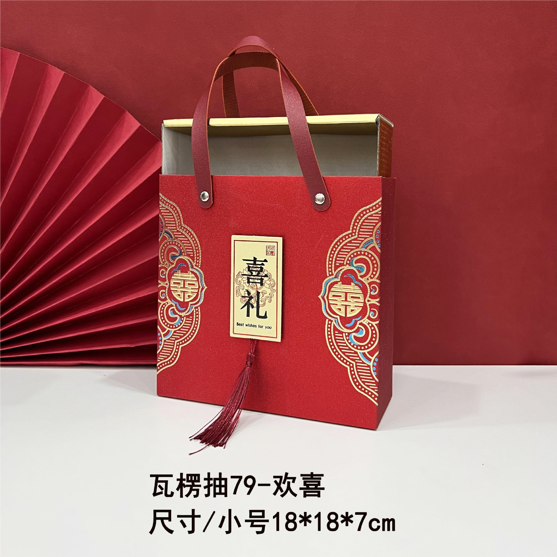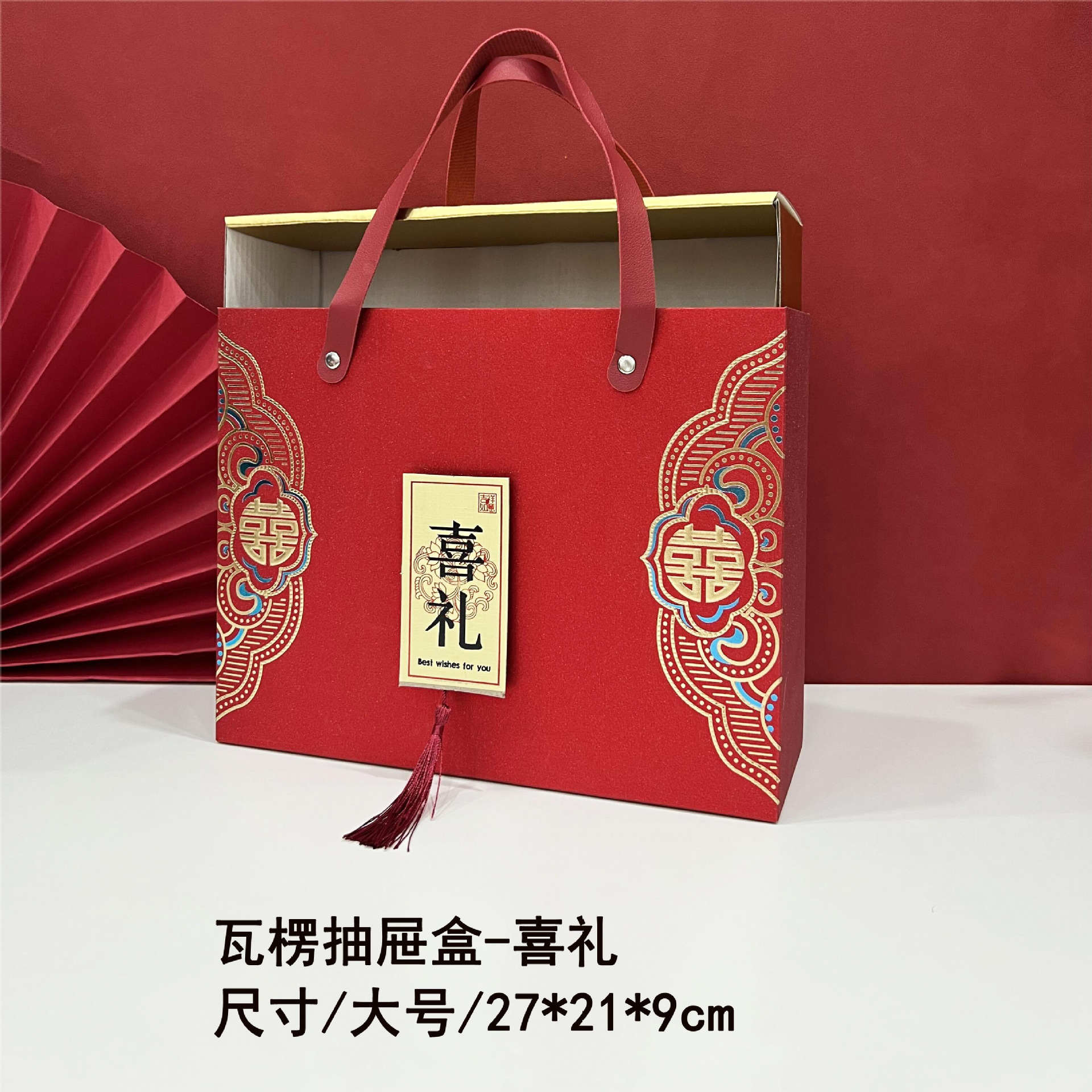 新款婚礼结婚伴手礼盒喜礼瓦楞抽屉盒中式复古喜糖盒伴娘伴手礼盒