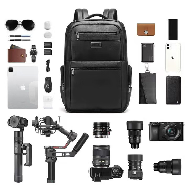 新款相机双肩包电脑多隔层真皮背包商务通勤真皮双肩包