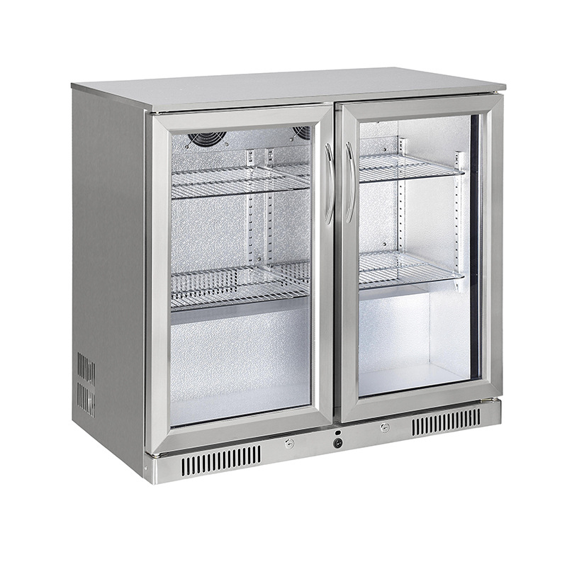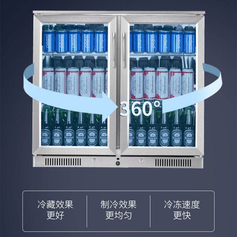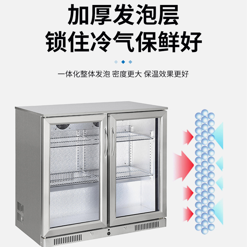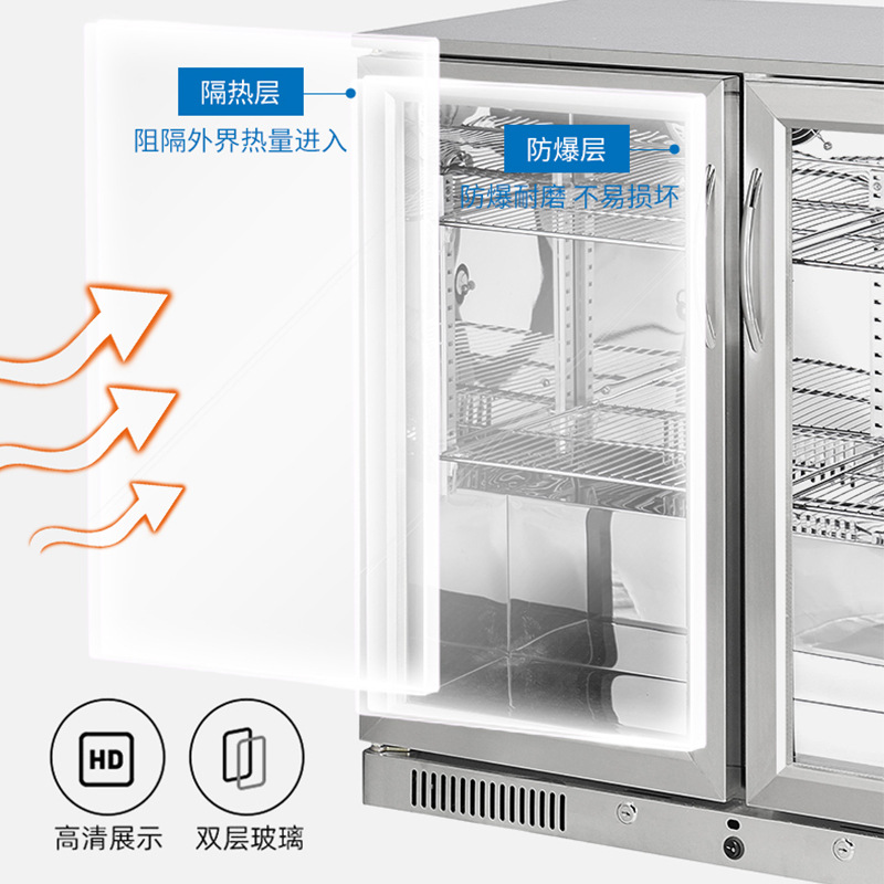 208L佛山啤酒饮料展示柜冷藏柜手拉双开门不锈钢酒吧吧台展示柜