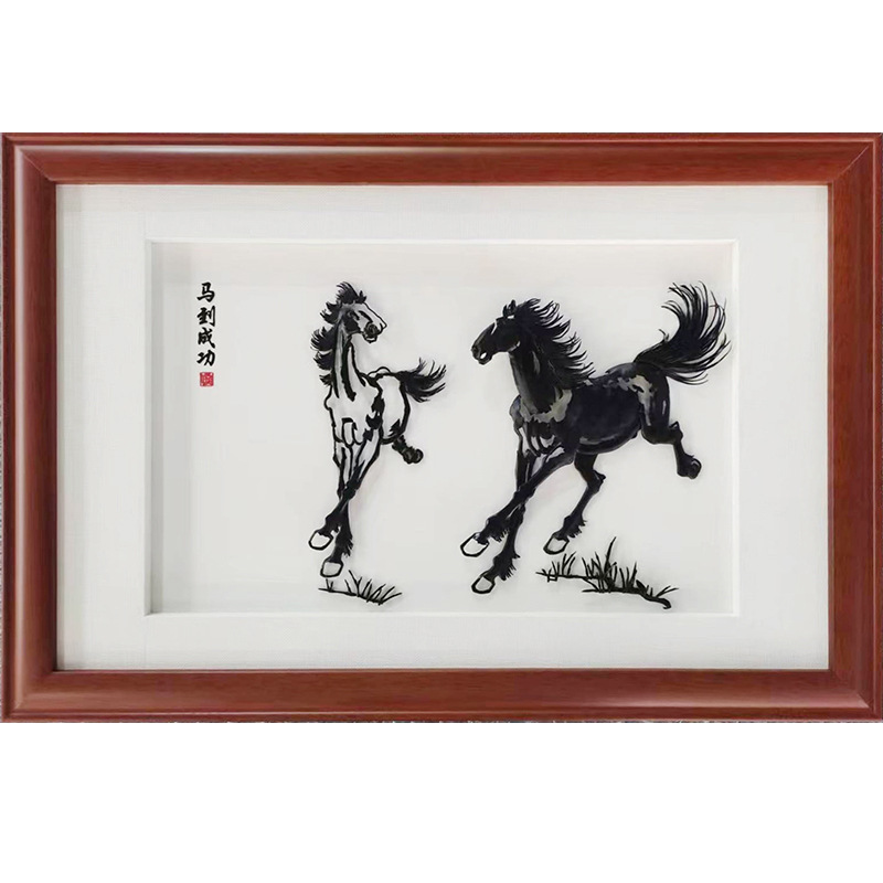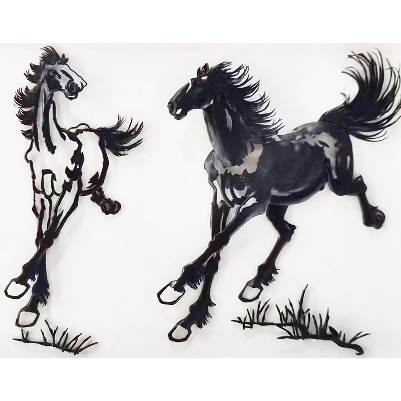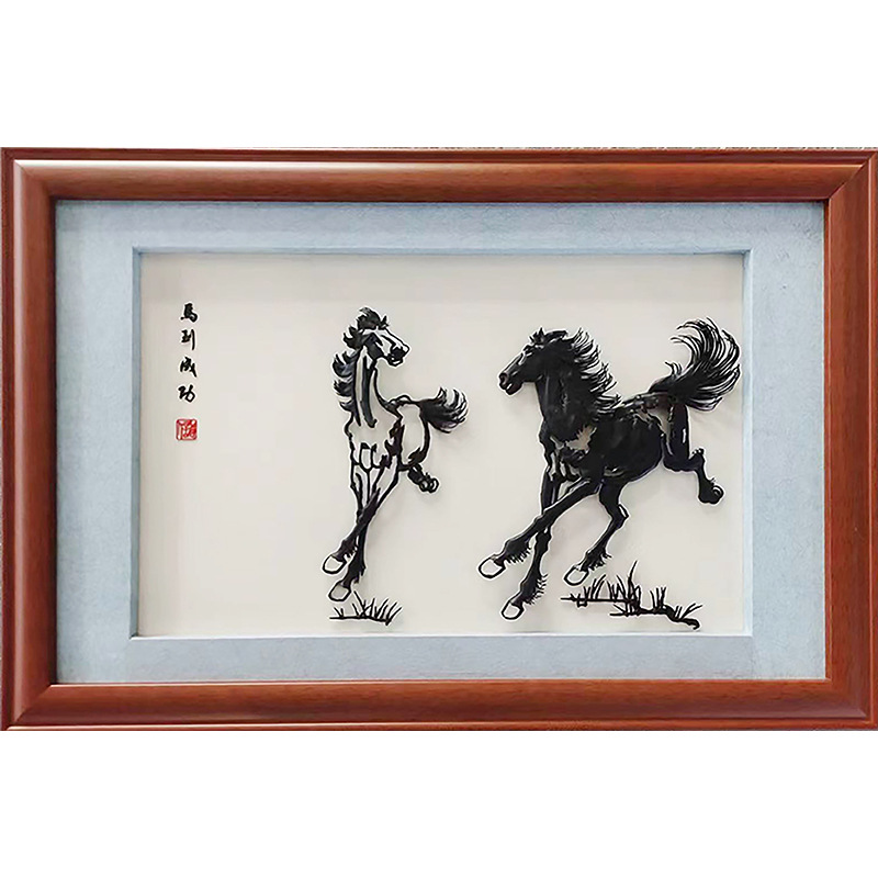 芜湖储氏铁画 双马图马到成功家居装饰挂画安徽非遗文化铁艺铁画