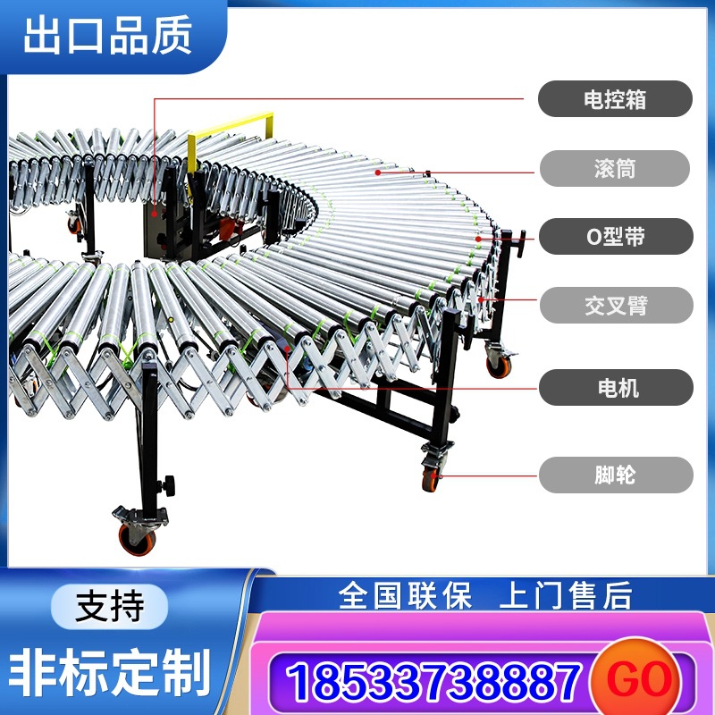 电动化伸缩动力滚筒输送机快递分拣线卸车装货传送带流水线转弯机