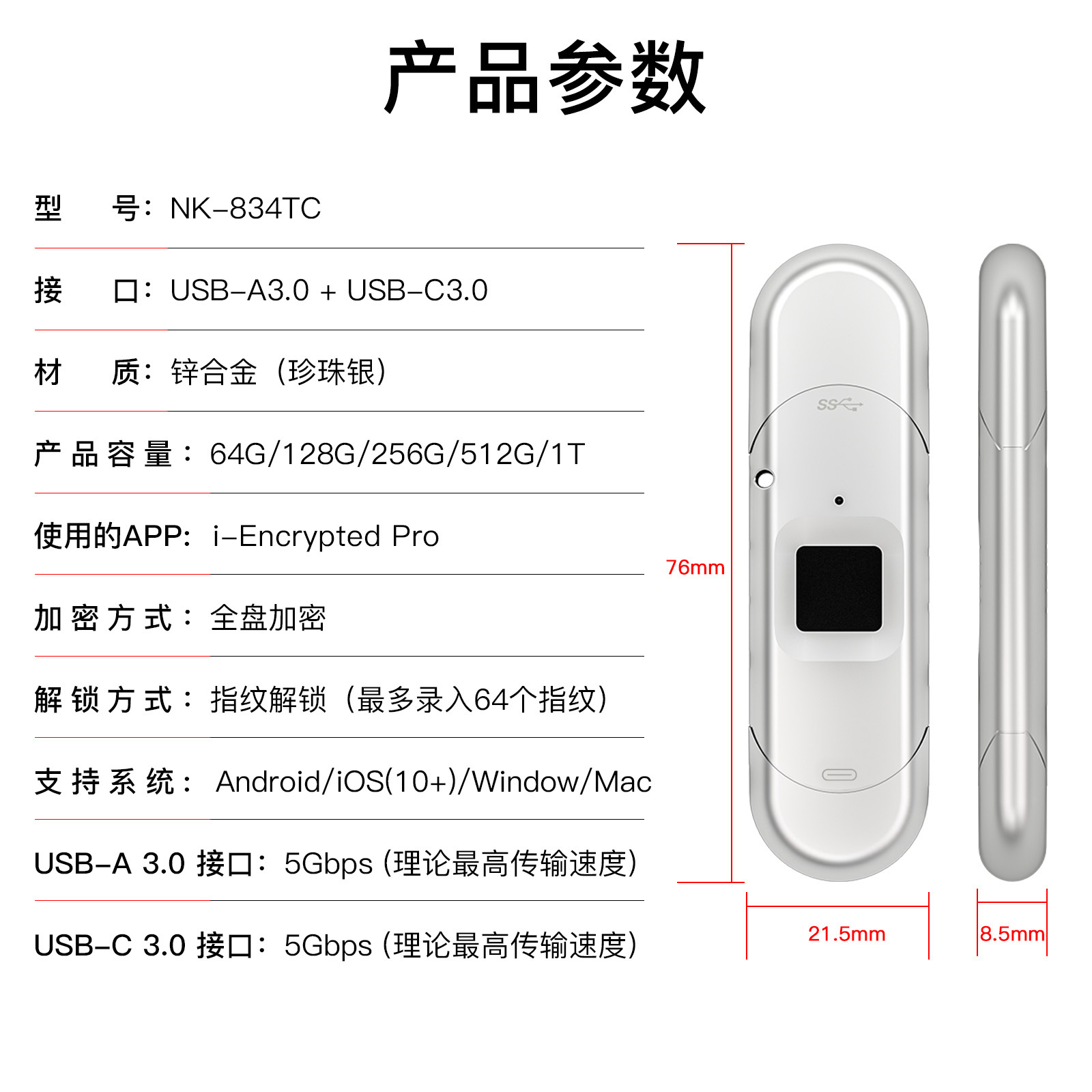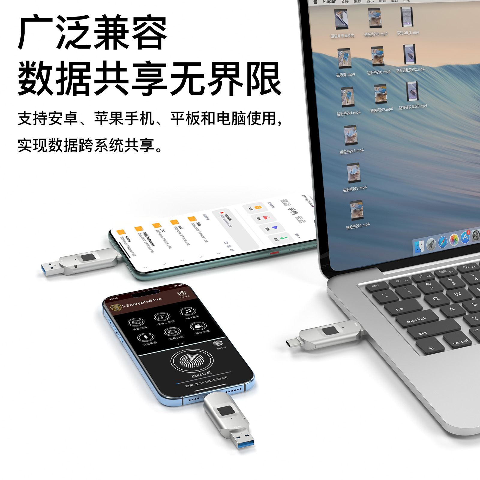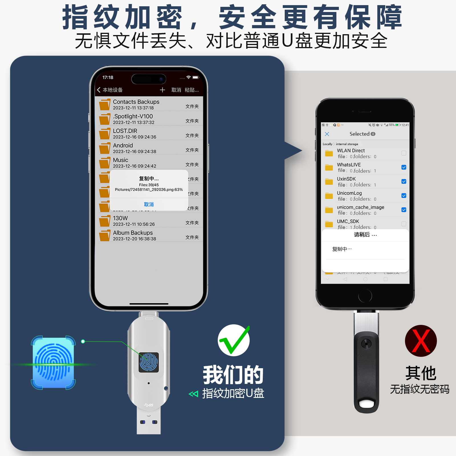 适用苹果15指纹加密U盘支持iPhone15iPadPro手机电脑通用加密U盘