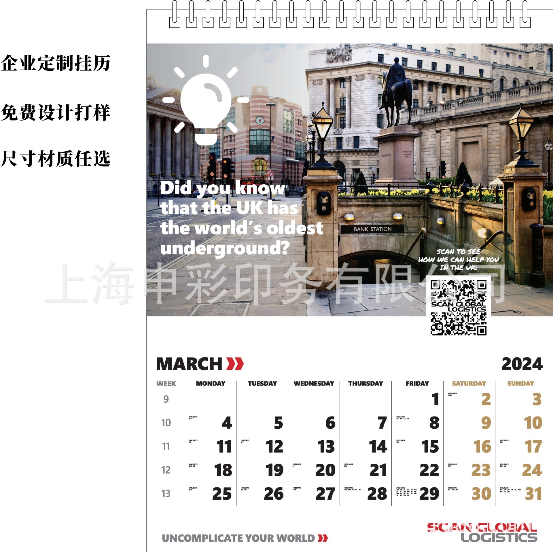 创意2024个性精美十三张商务挂墙月历日历企业广告挂历LOGO印刷