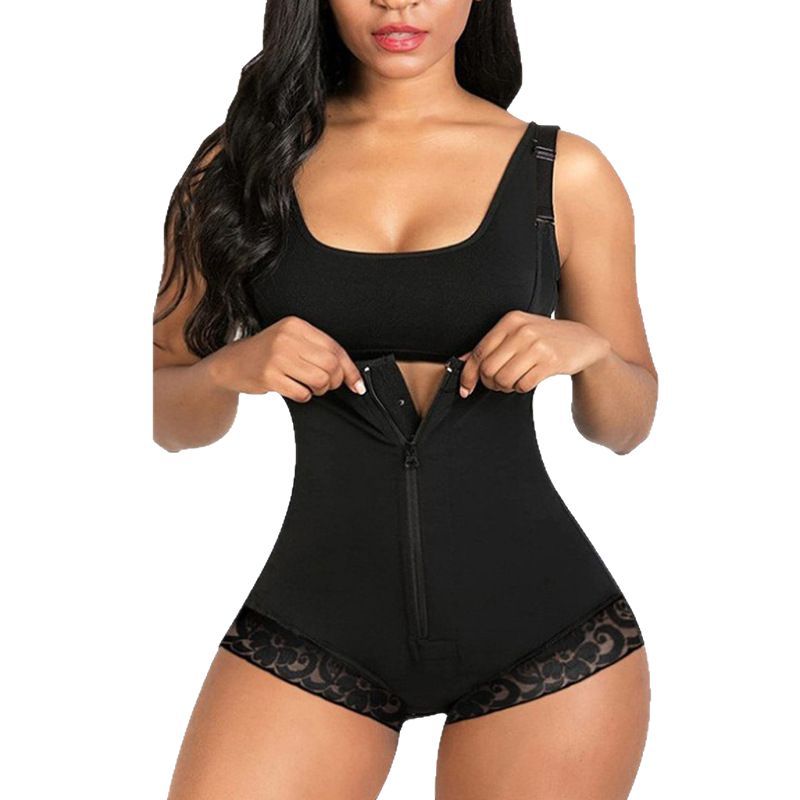 高腰拉链排扣连体塑身衣蕾丝吊带美体束胸塑身衣合跨收腹提臀裤女