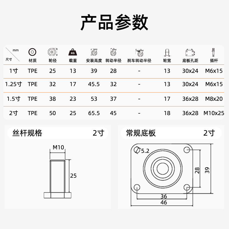 型号 | 2寸丝杆刹车(M8*20) | 材质 | TPE |