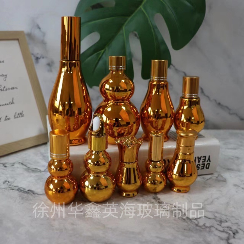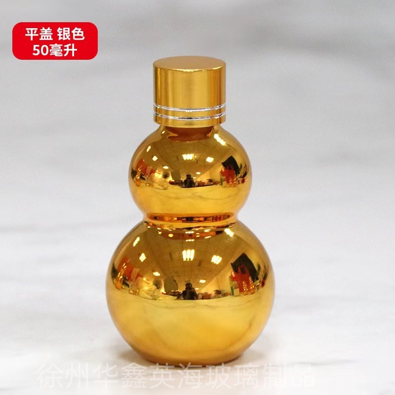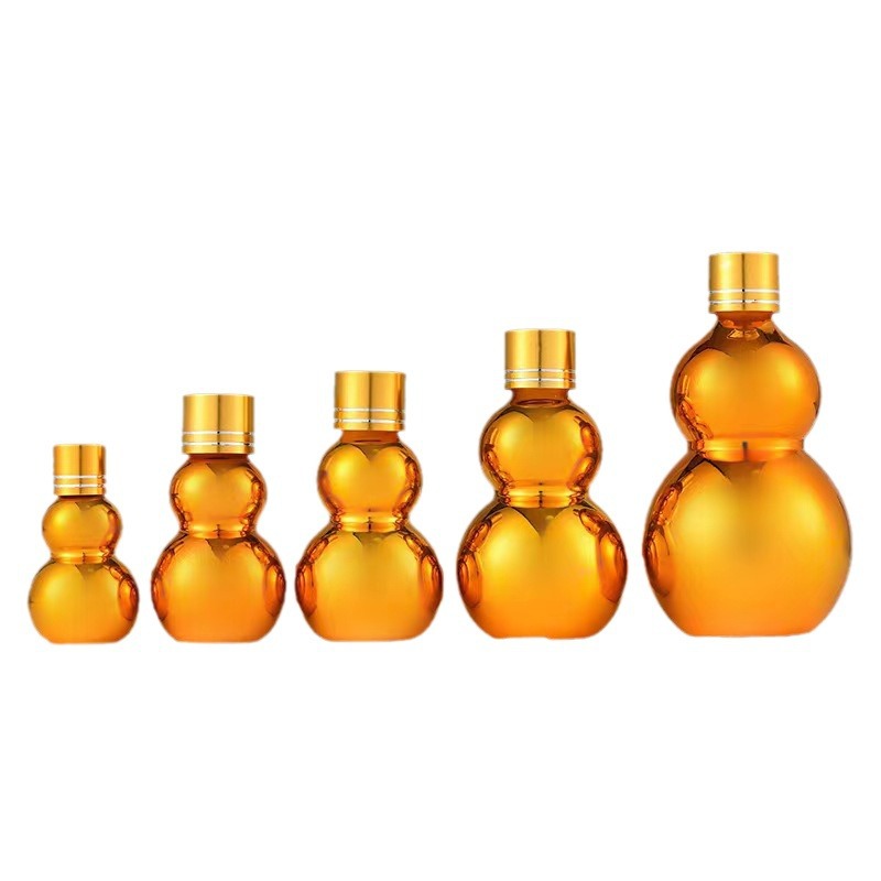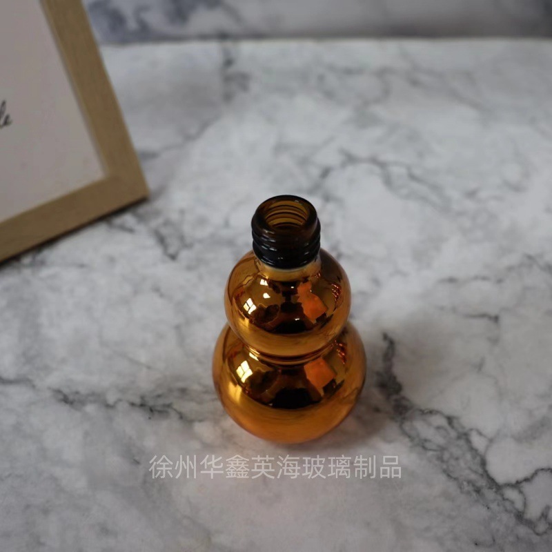 50ml电镀金葫芦玻璃瓶保健品分装瓶小药丸瓶精油瓶现货可丝印logo