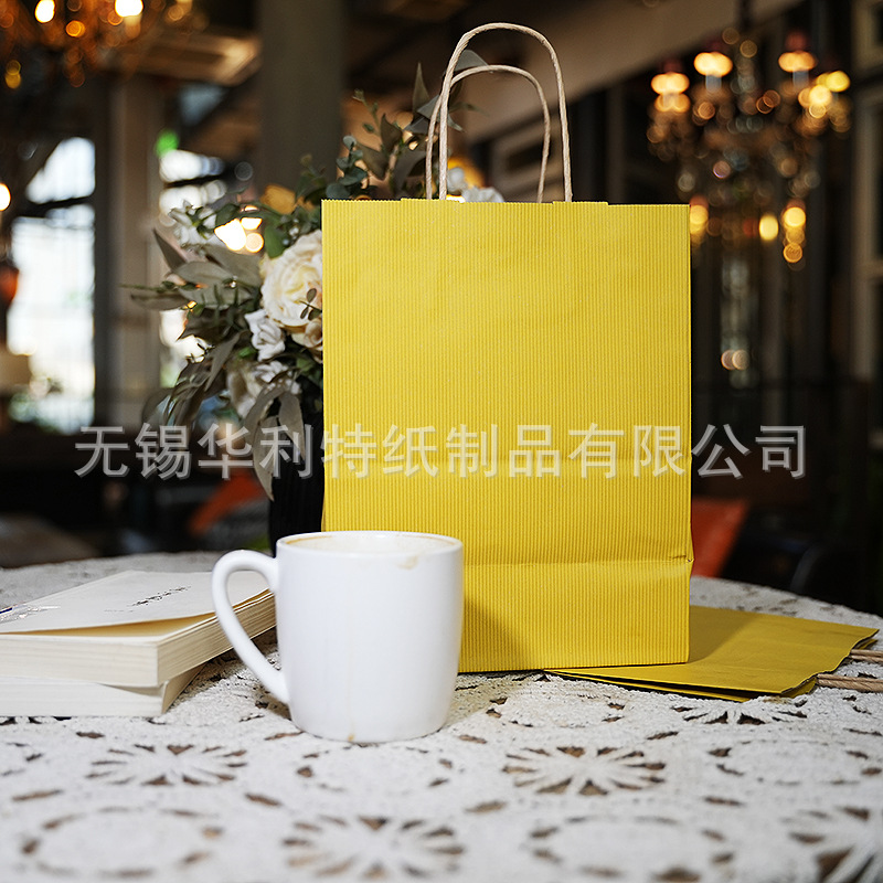 黄色手提袋现货蛋糕奶茶烘焙甜品外卖打包袋牛皮纸购物服装礼品袋