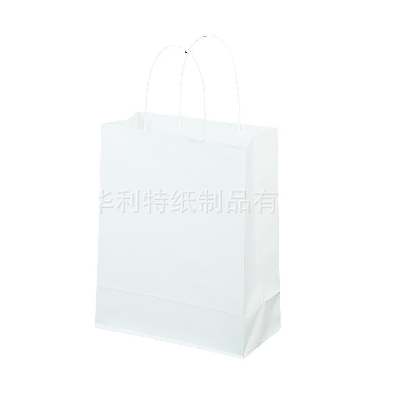 现货白色手提袋牛皮纸购物服装礼品袋蛋糕奶茶烘焙甜品打包袋