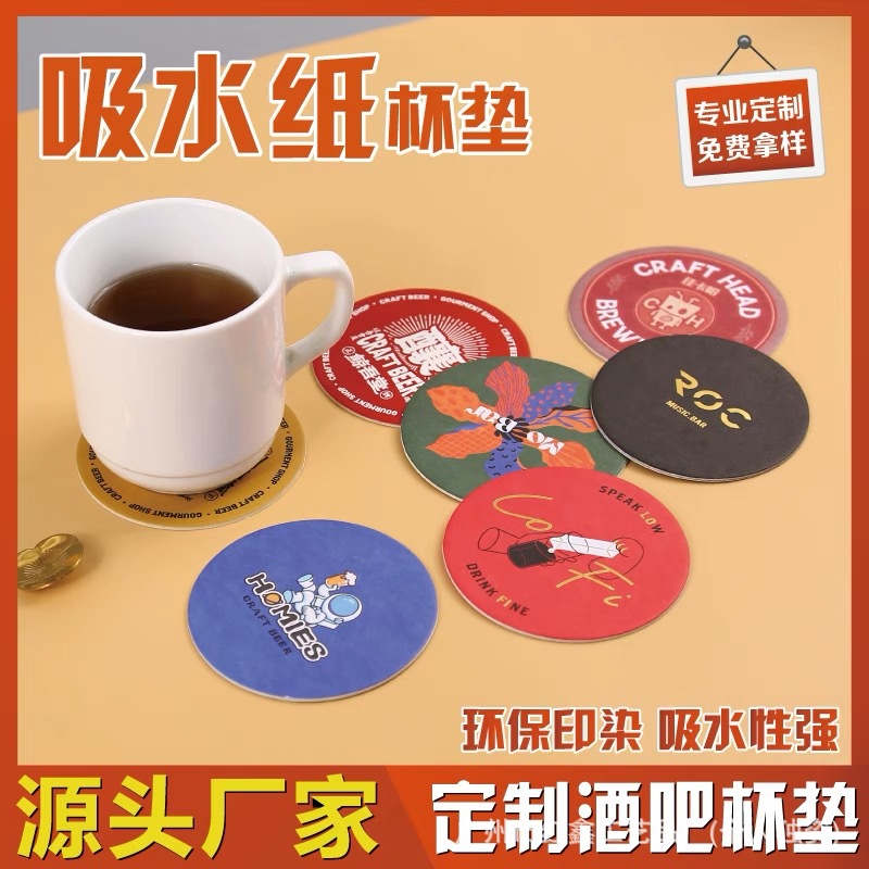 源头厂家吸水纸杯垫定 制批发创意环保 来图制作免费设计广告LOGO