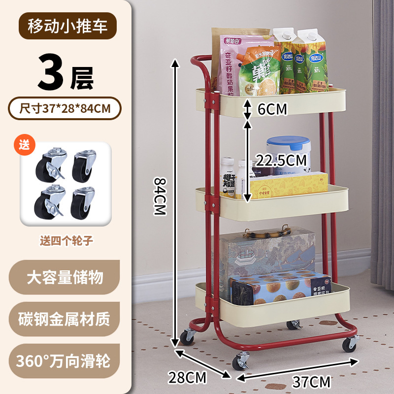| 颜色 | 3层手推车红色筐+米黄扶手+2挂盒 | 颜色 | 3层手推车米黄色+2挂盒 |
