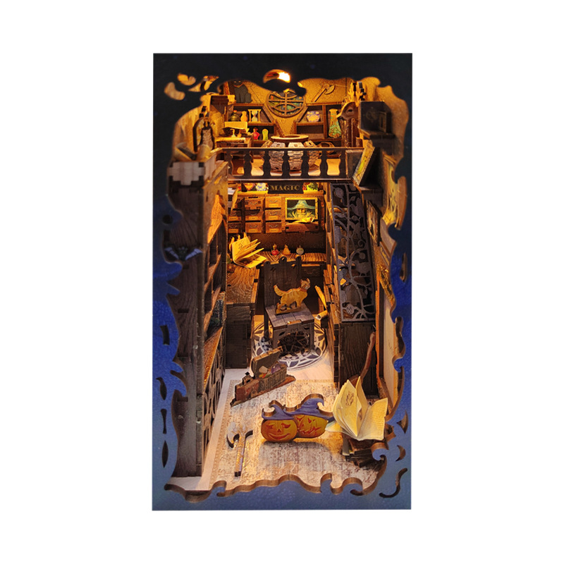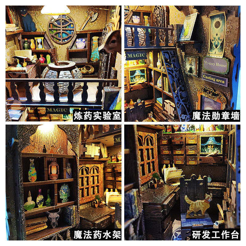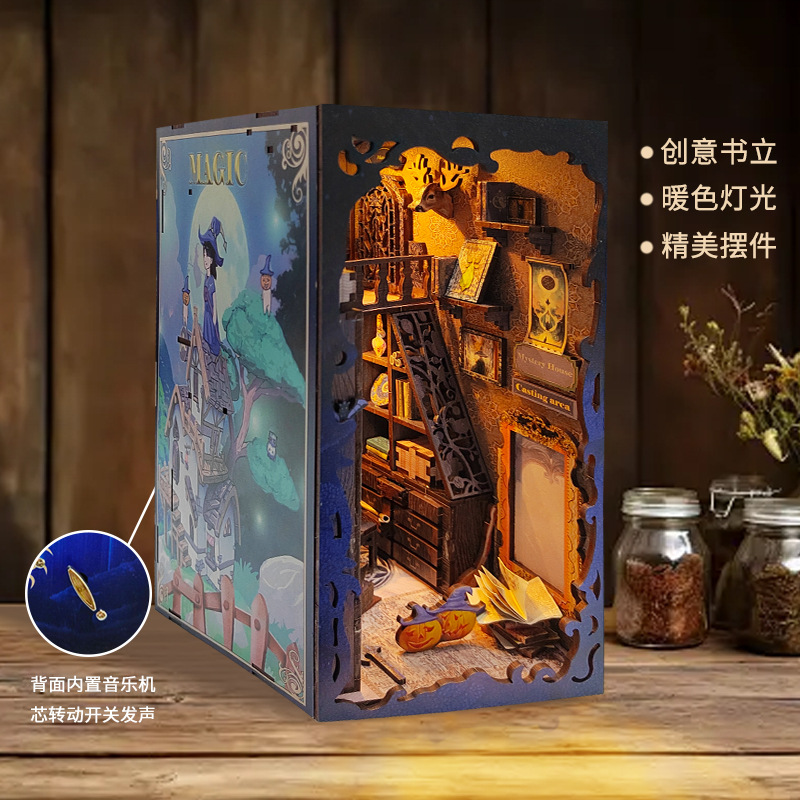 手工拼装书立魔法书院diy小屋3D立体拼图感应灯书档创意微缩模型