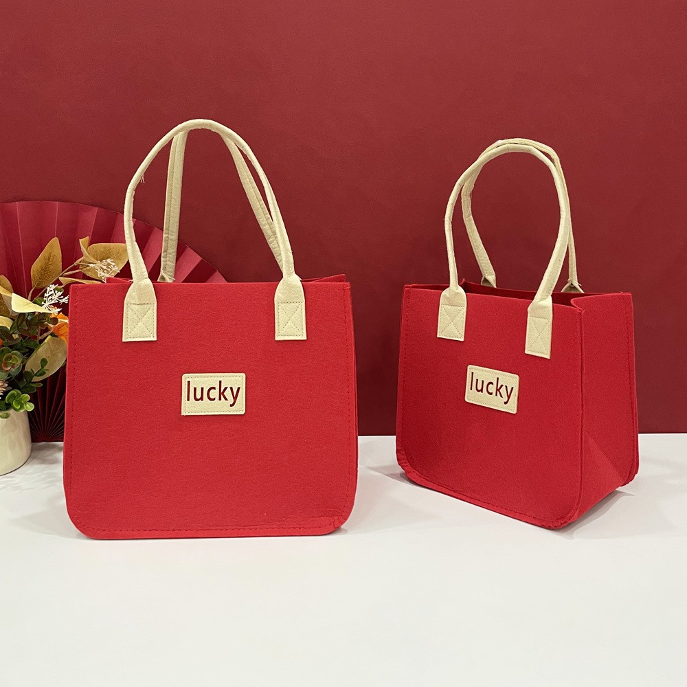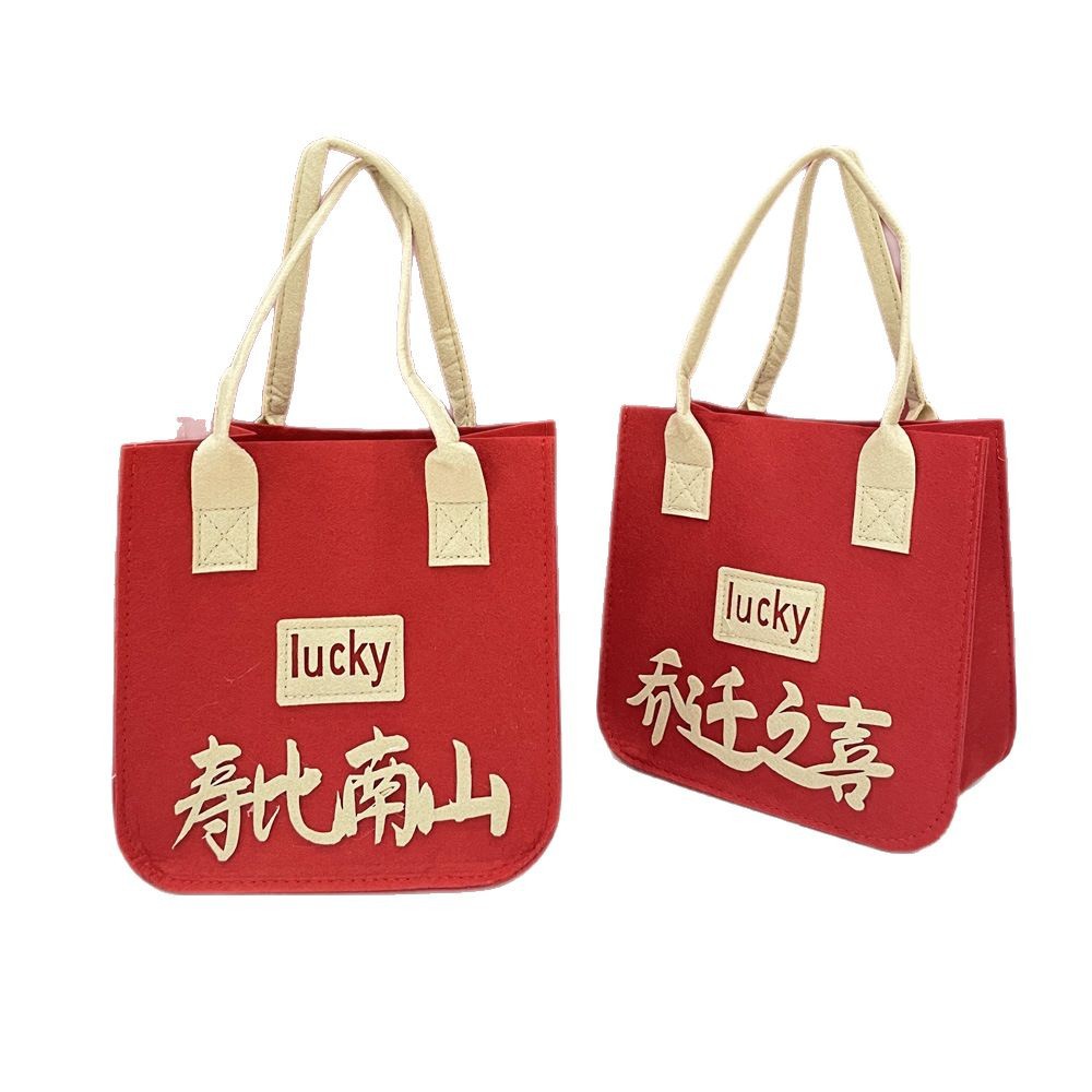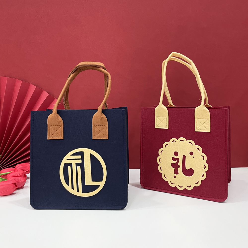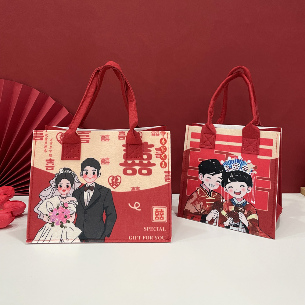 高级感毛毡礼品袋批发结婚伴手礼布袋手提袋新中式卡通零食喜糖袋