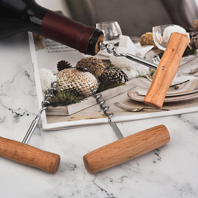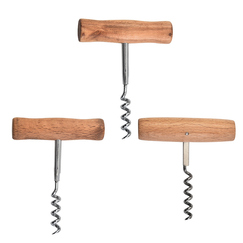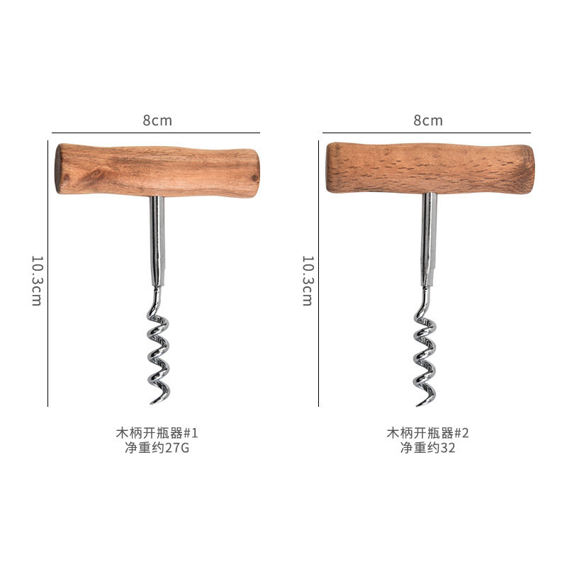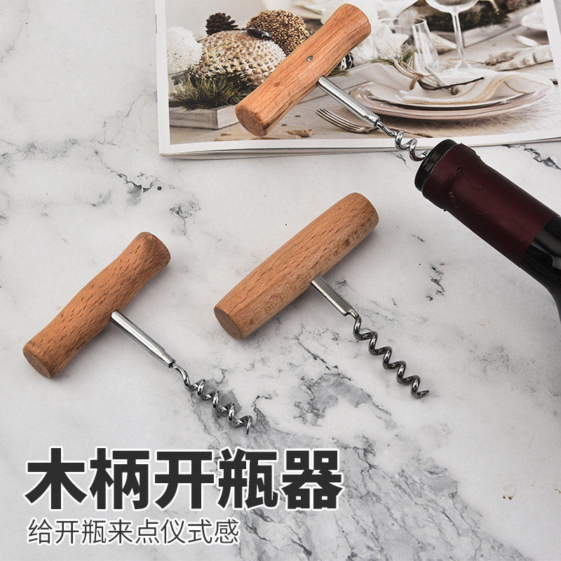 厂家批发木柄不锈钢开瓶器简易红酒开瓶器葡萄酒启瓶器厨小工具