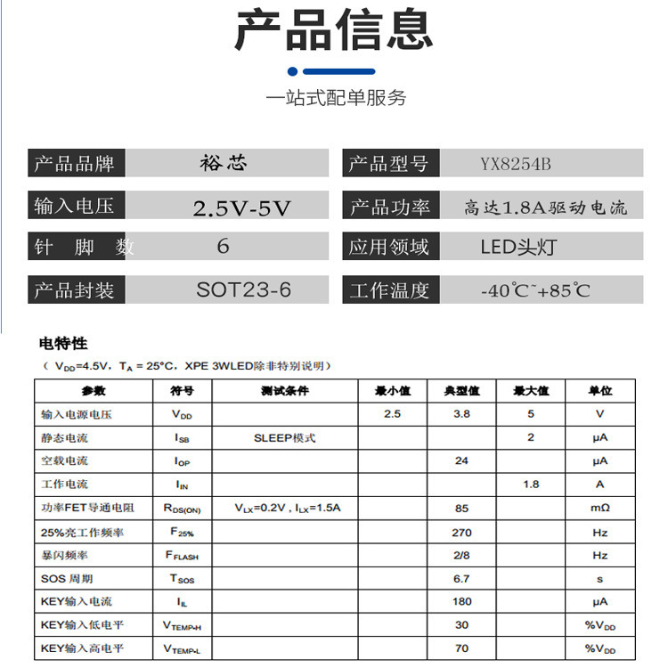 LED手电筒驱动芯片IC YX8254B 四模式设定 轻触开关