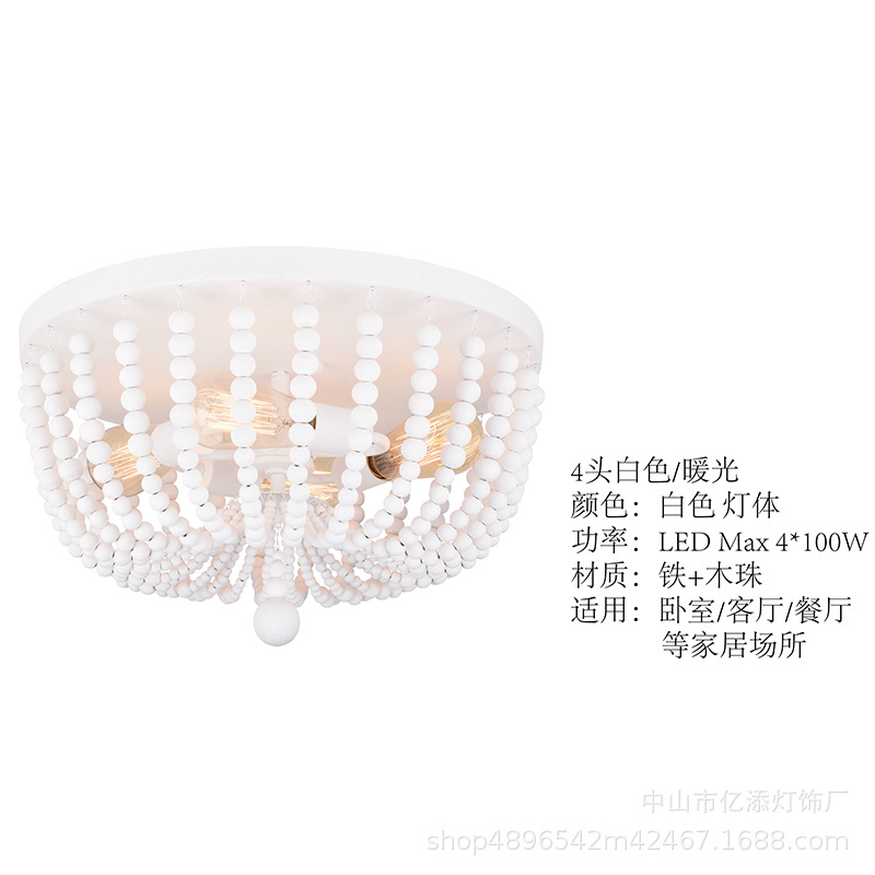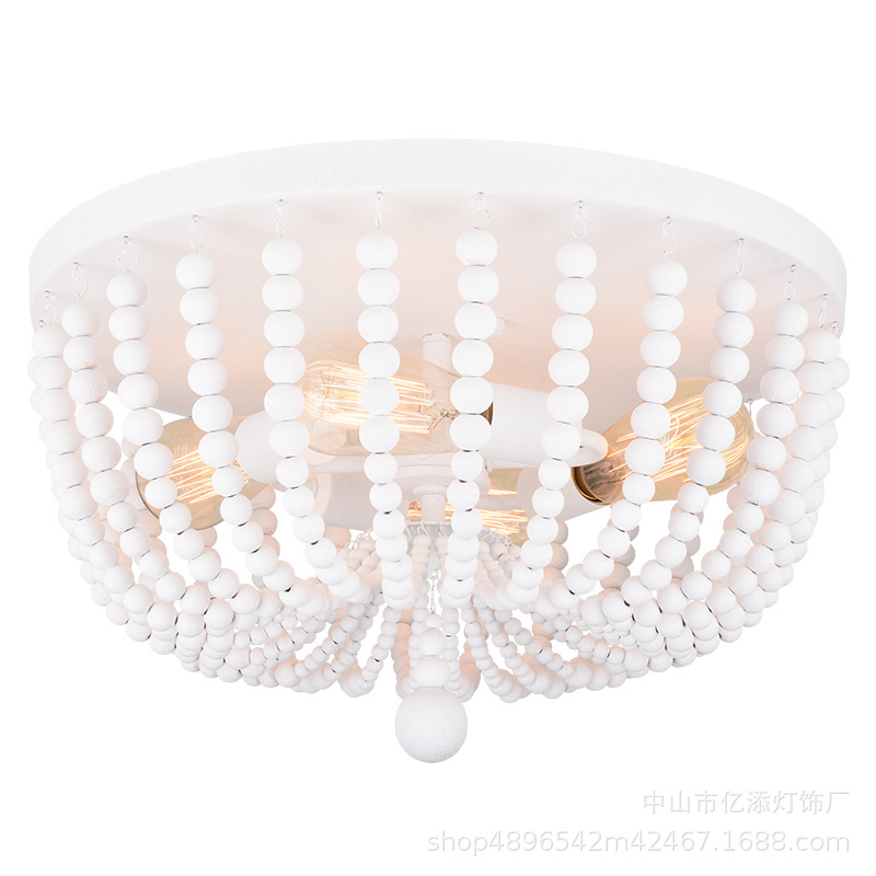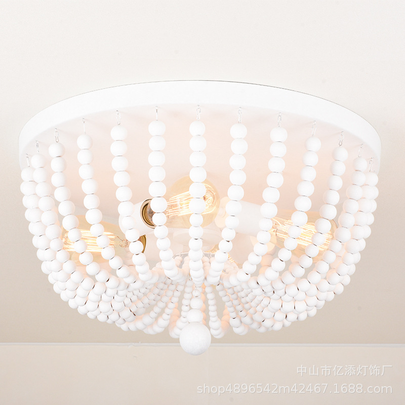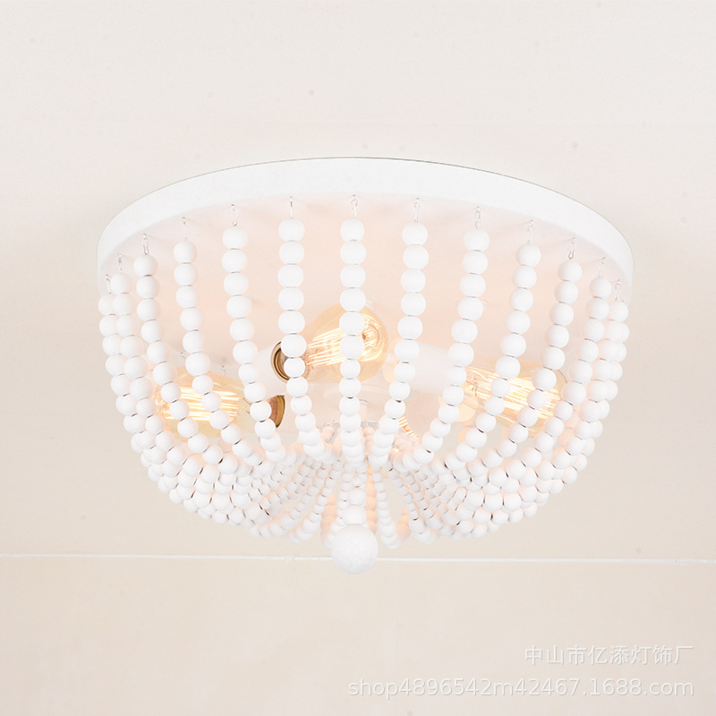 亚马逊新款美式复古吸顶灯白木珠客厅餐厅公主卧室灯田园风格灯具