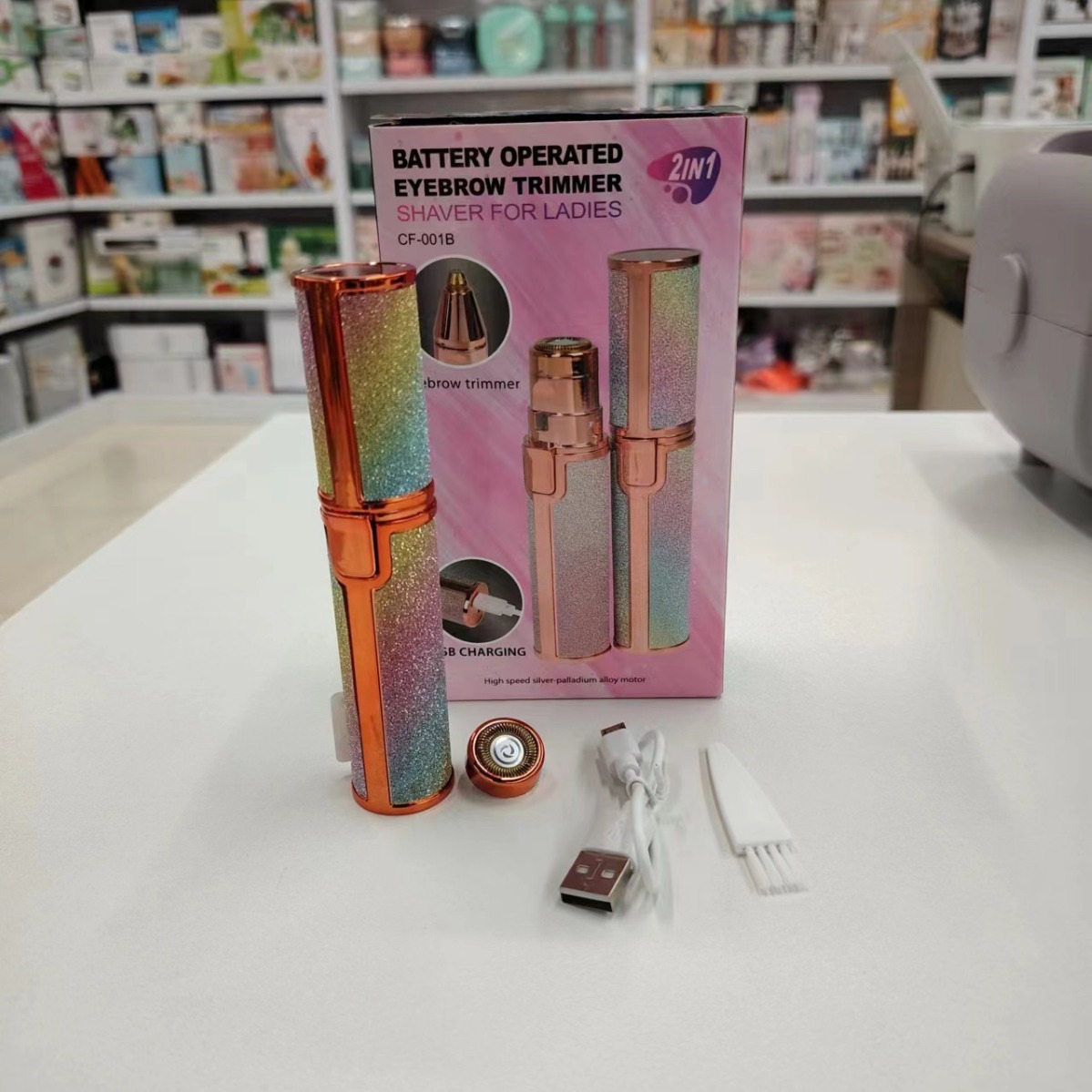 口红炫彩二合一USB充电修眉器女士脱毛器小型面部脱毛仪脸部剃毛