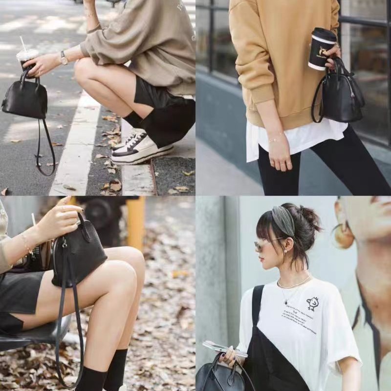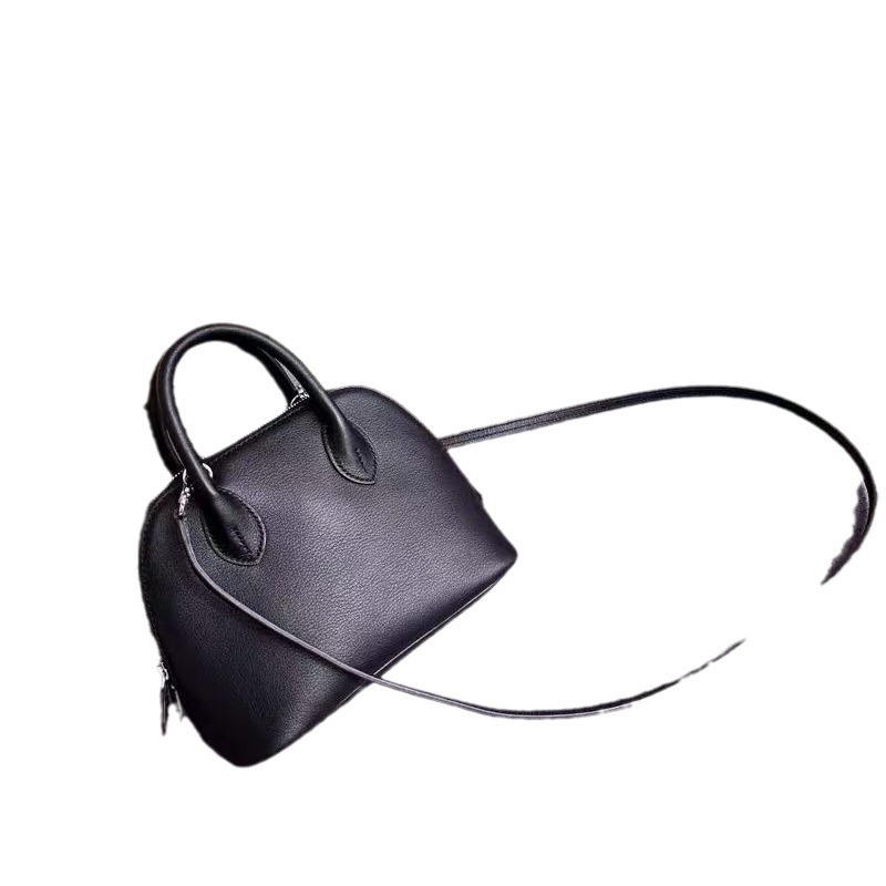 半手缝全皮贝壳包女mini保龄球包真皮钢五金女包手拎单肩斜挎包潮
