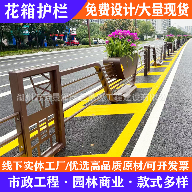 户外市政道路隔离花箱护栏组合不锈钢铁艺城市马路栅栏人行道栏杆