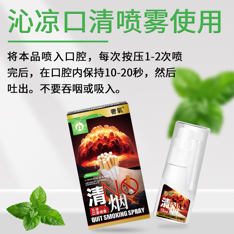 | 产品类型 | 奢氧-清烟-沁凉口清喷雾 (中英版)【30ml/瓶】 | 使用方法 | 将本品喷涂于口腔中,每次按压1-2下,喷后在口腔 中含10-20秒后吐出,请勿吞咽 或吸入。 |