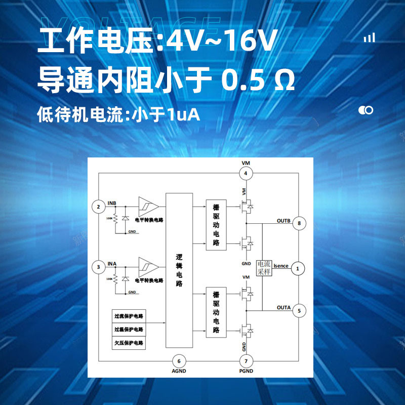 电子锁驱动ic 中科芯亿达 MX1618 16V 1.8A有刷直流马达驱动芯片