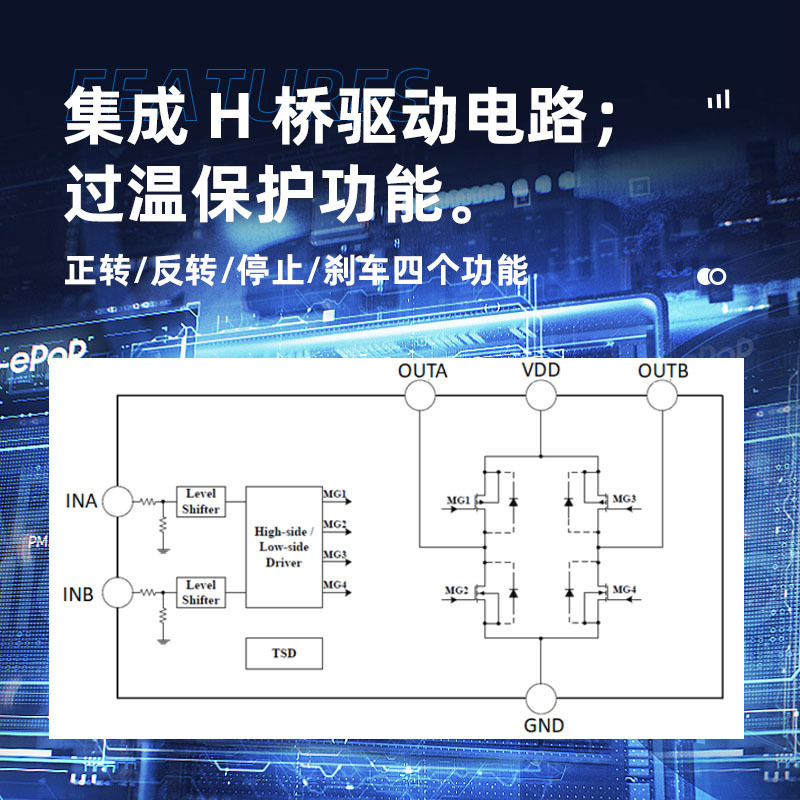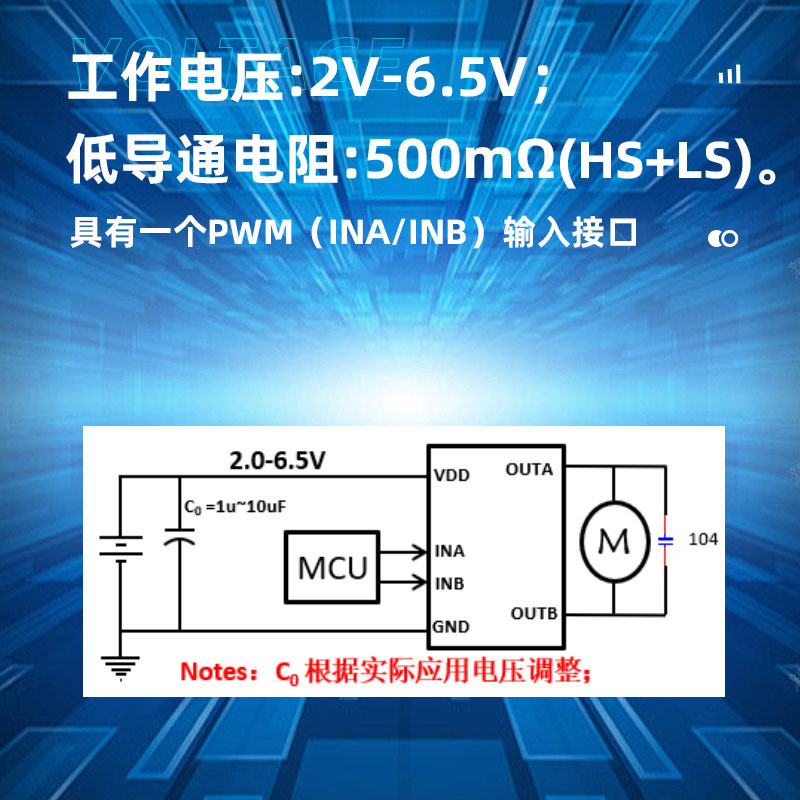 低压直流电机驱动芯片小家电马达驱动ic SA8301B持续电流1A 6.5V