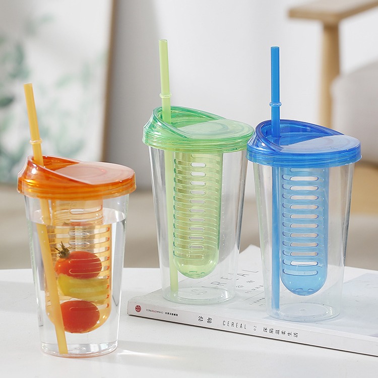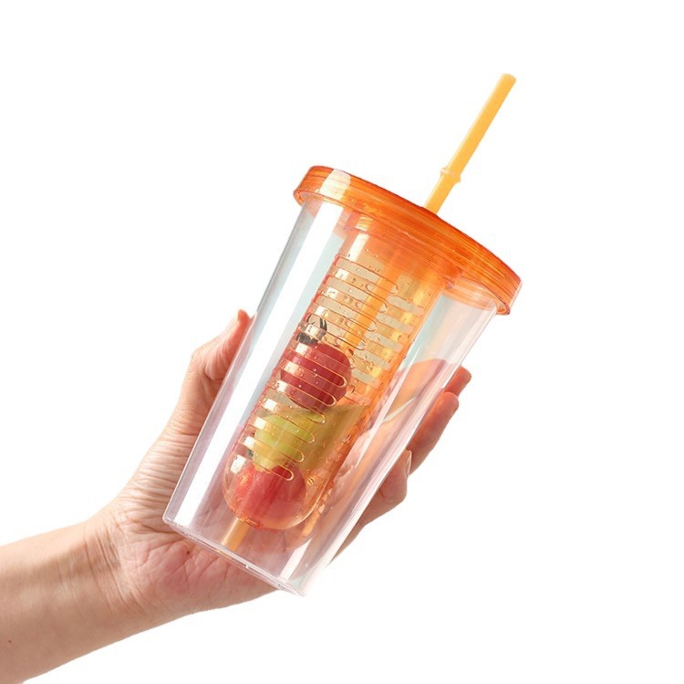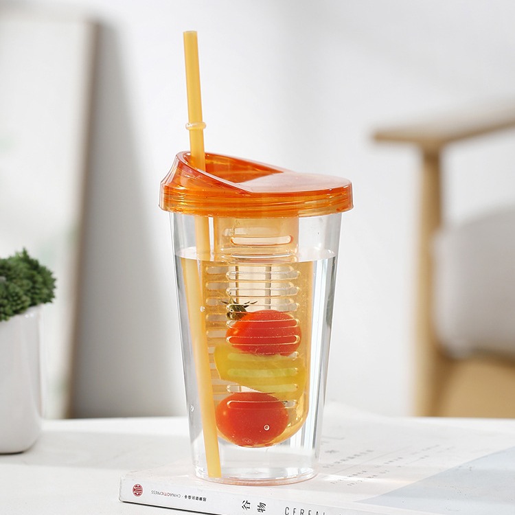 高颜值ins风可拆卸茶隔茶漏水果吸管透明水杯简约大气可随身携带
