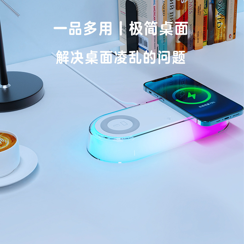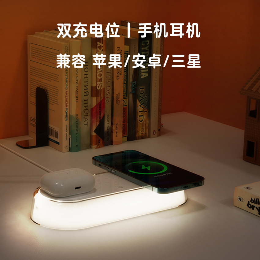 跨境外贸新品多功能无线充小夜灯25W双充电位三种灯光触摸小夜灯