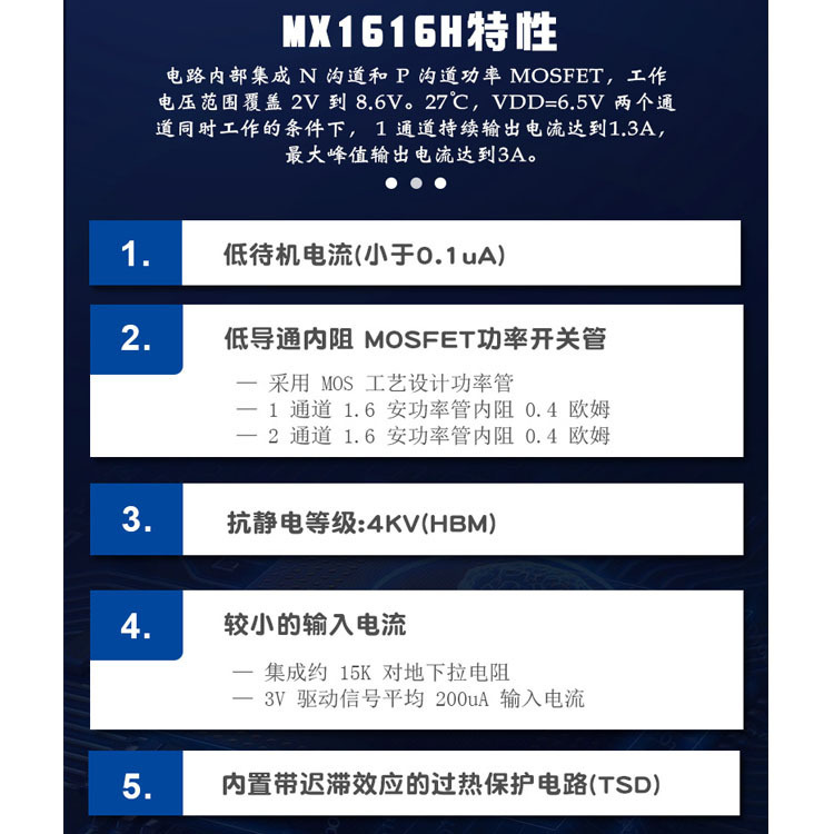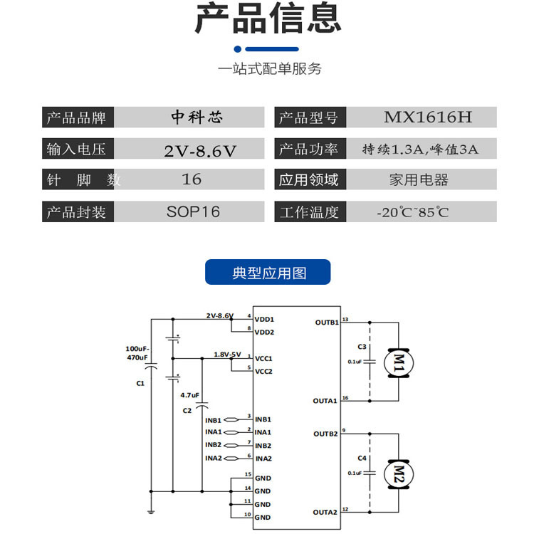 双路有刷直流马达驱动IC 中科芯亿达原装 MX1616H 峰值电流3A