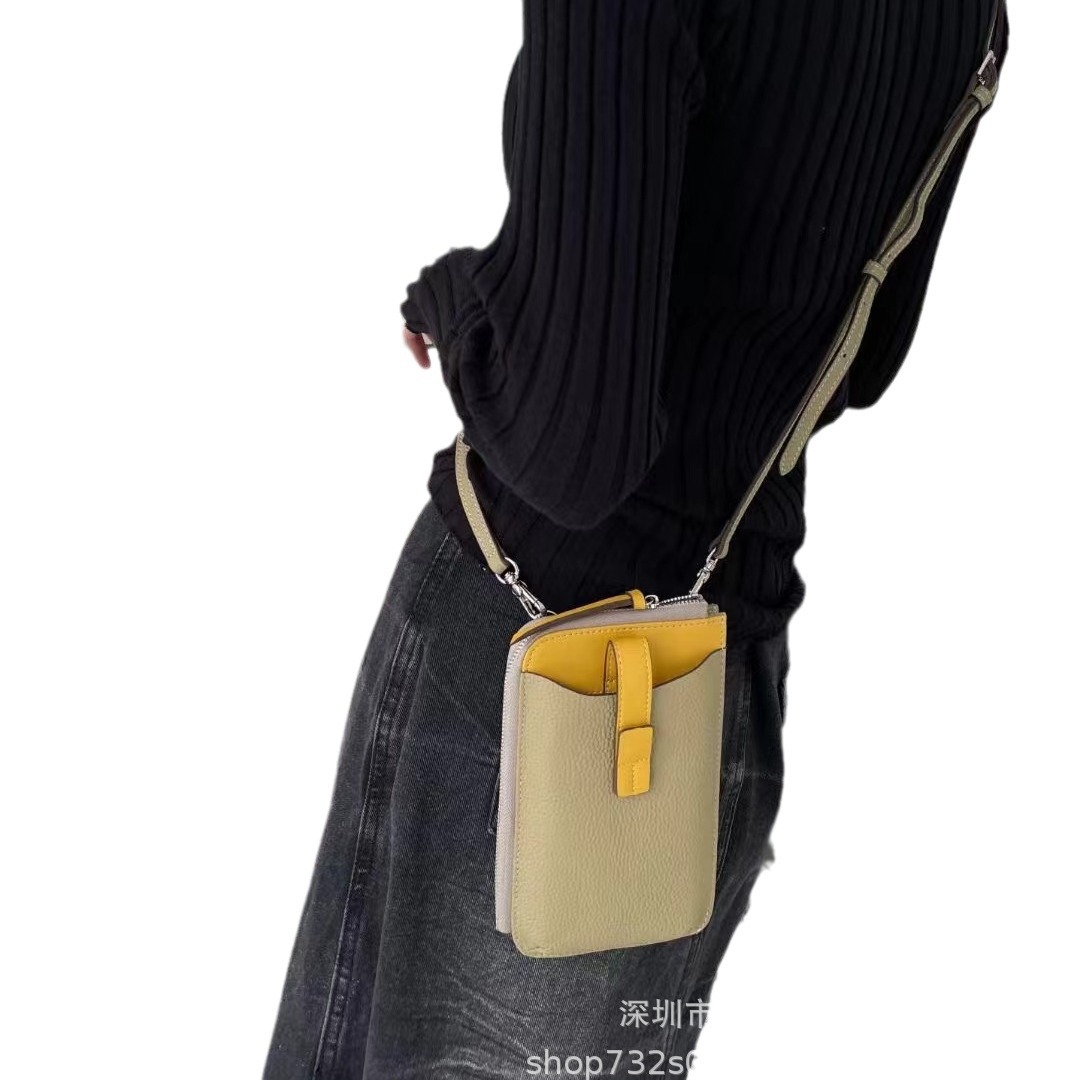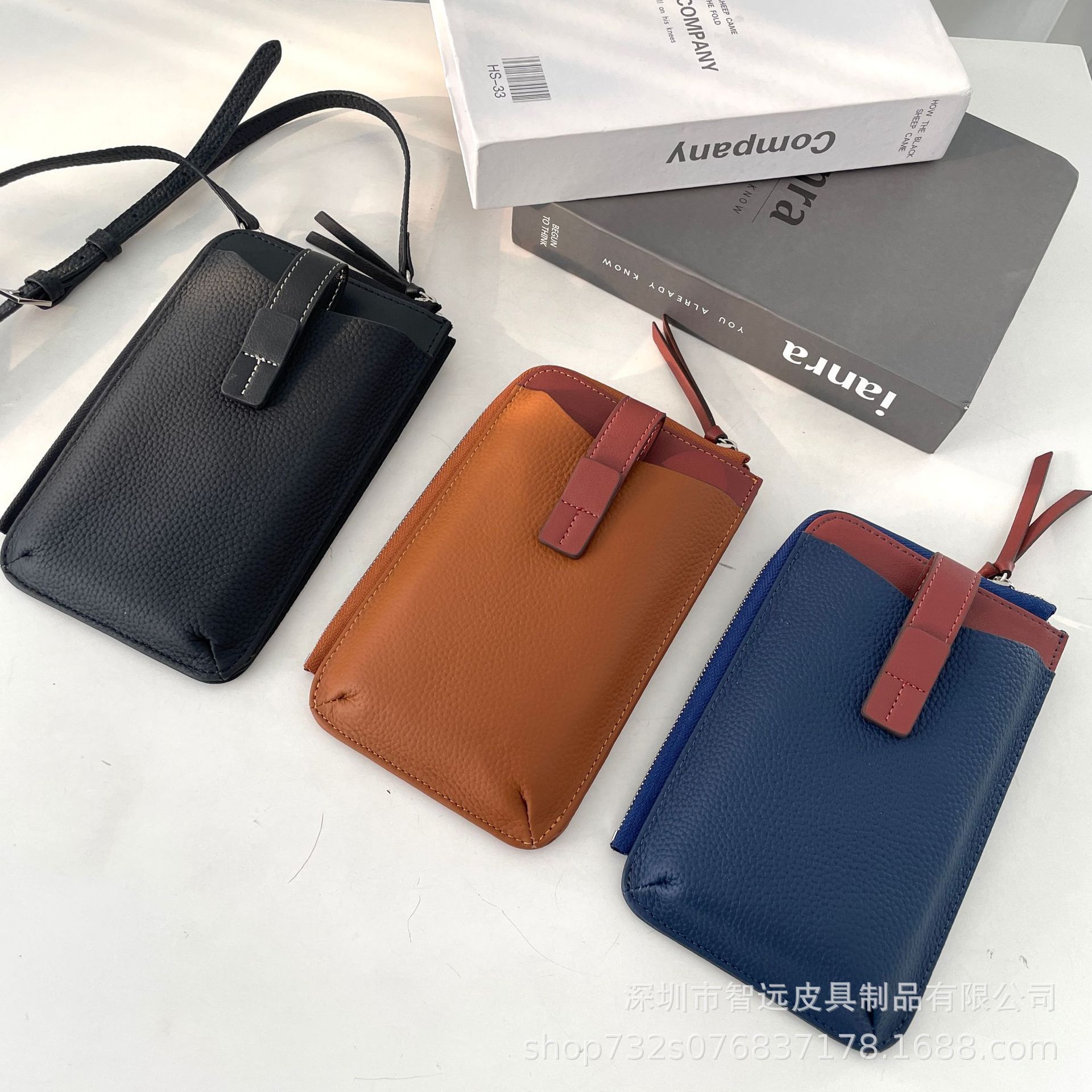 时尚撞色手机包大容量头层牛皮荔枝纹肩斜挎多功能女包手拿钱包
