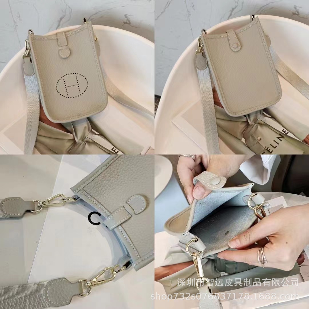 头层牛皮迷你手机包伊芙琳小包真皮荔枝纹男女式单肩包斜挎手机包