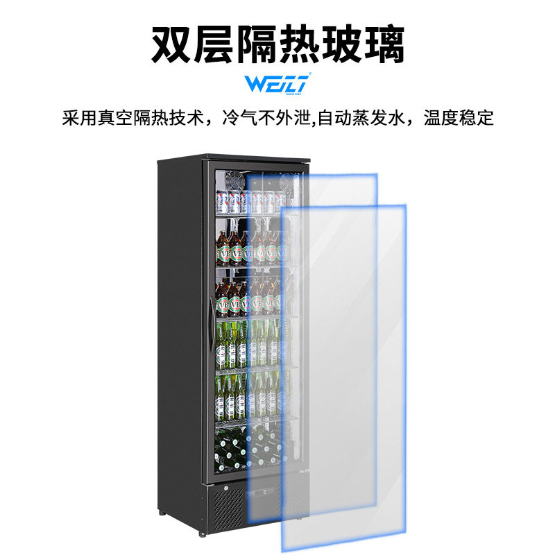 商用单门293L啤酒柜 立式冰展示柜 超市保鲜冷藏展示柜酒吧饮料柜