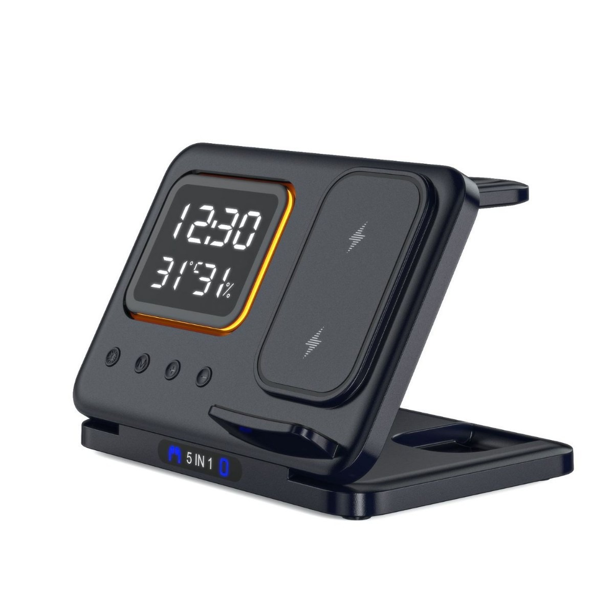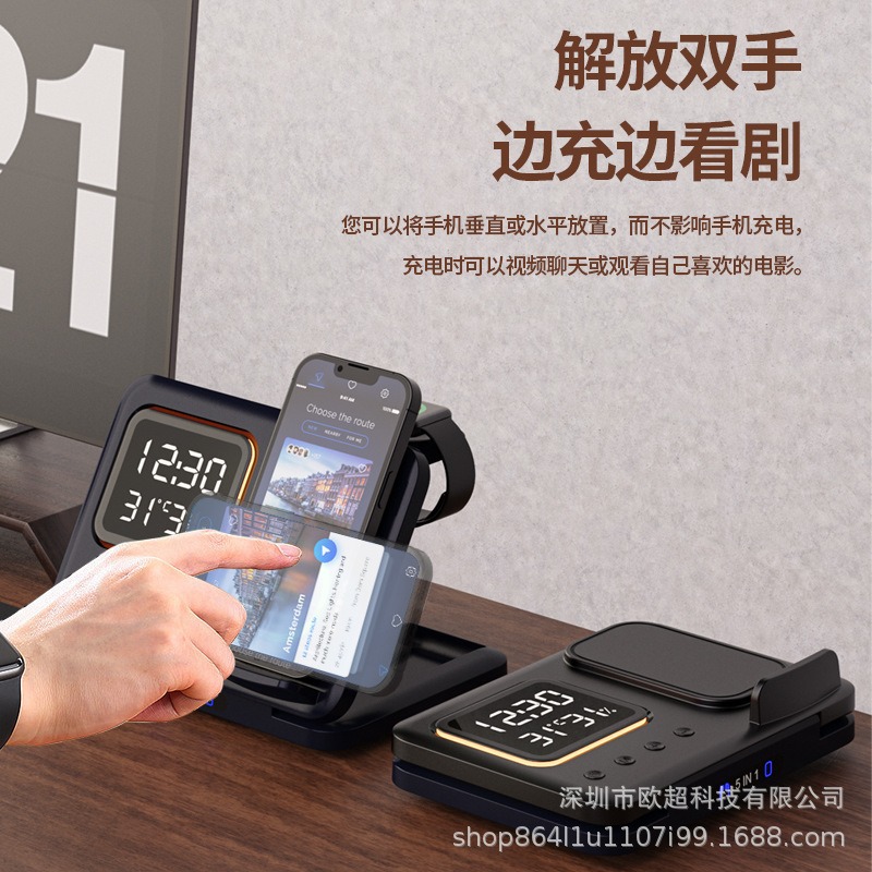 跨境五合一折叠无线充电器时钟氛围灯手机手表耳机无线充电器私模