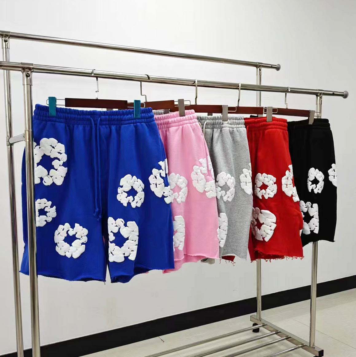 跨境高品质重磅DENIM TEARS木棉花短裤满印发泡牛仔眼泪五分裤潮