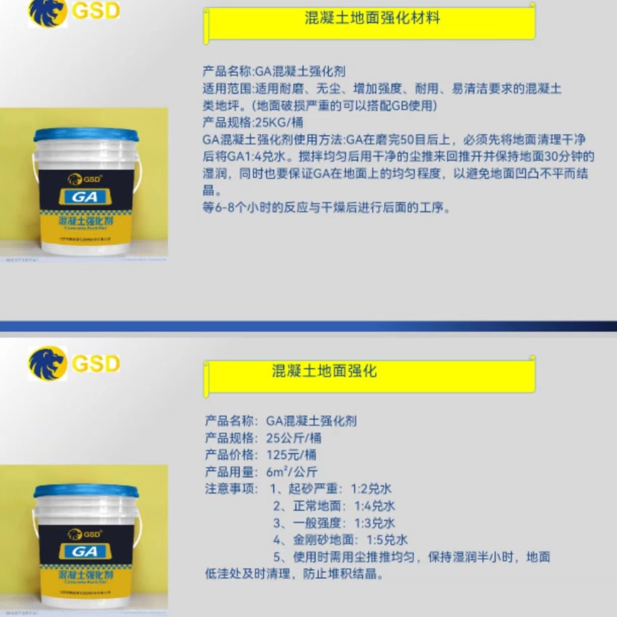 GA混凝土强化剂硬化剂水泥地面固化剂