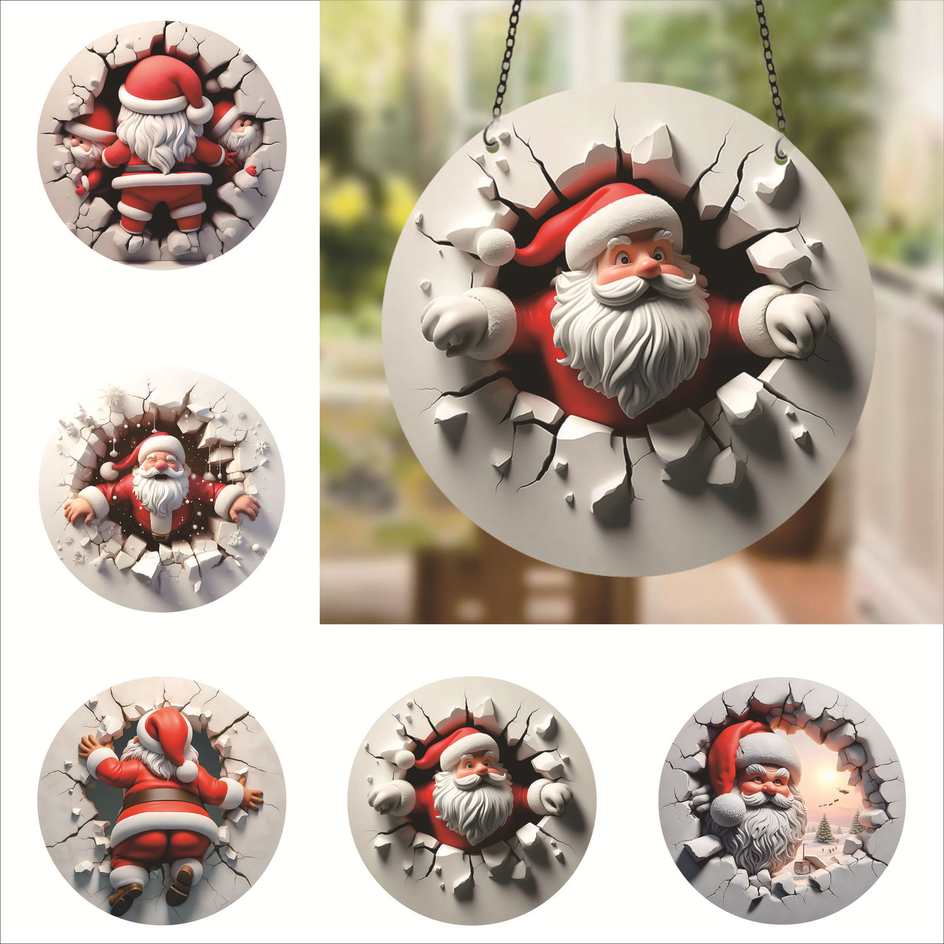 跨境圆形亚克力圣诞装饰圣诞老人挂饰牌节日墙壁悬挂装饰品家居装