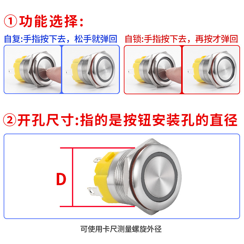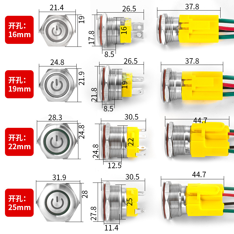 16/19/22/25MM金属按钮开关自锁喇叭汽车大电流功率防水功放短款
