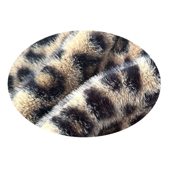 厂家直售豹纹印花仿水貂面料 箱包服饰涤纶印花长毛绒布面料批发